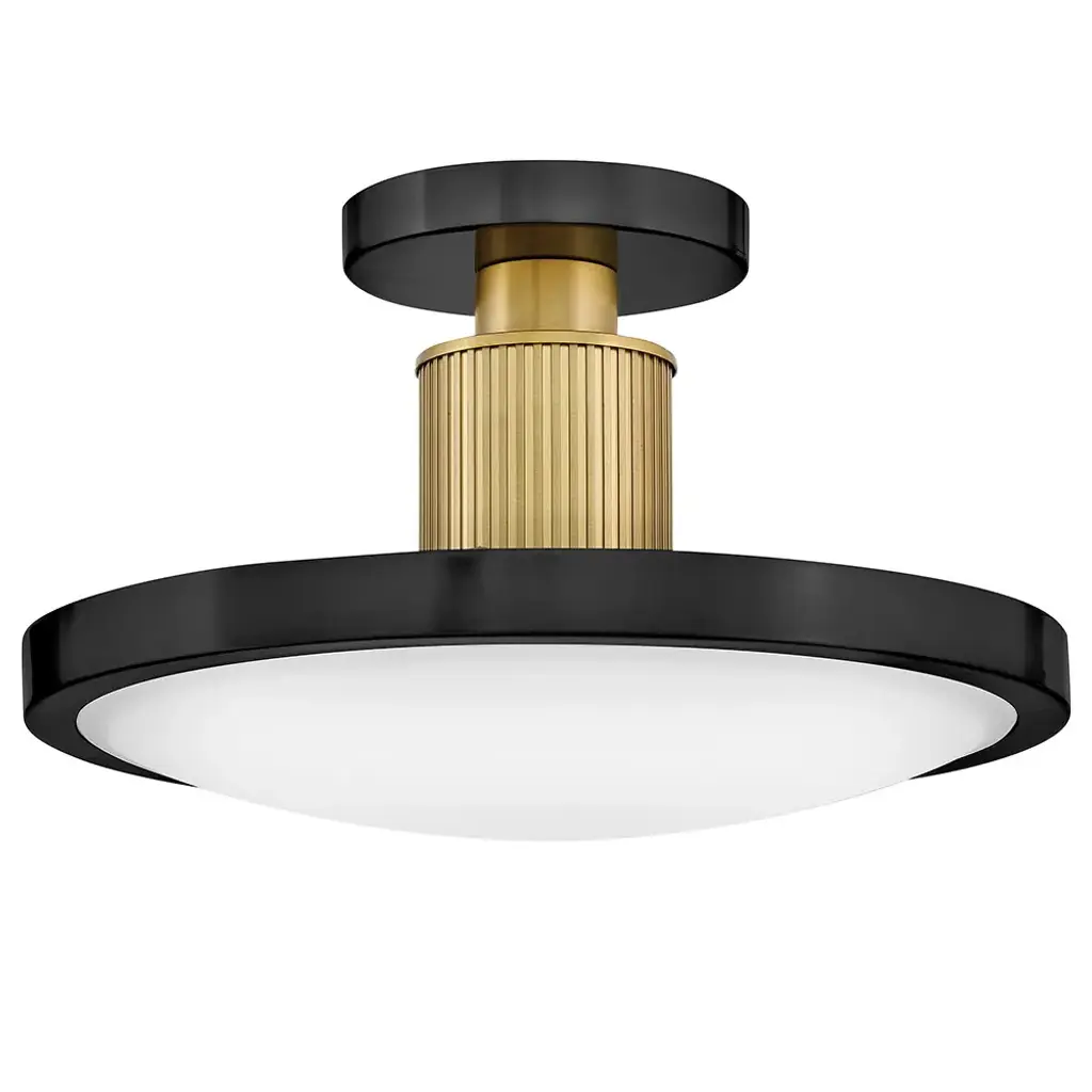 Hinkley Lighting 47593 Kieran 15" Wide Led Semi-Flush Ceiling Fixture - Black / Lacquered Brass