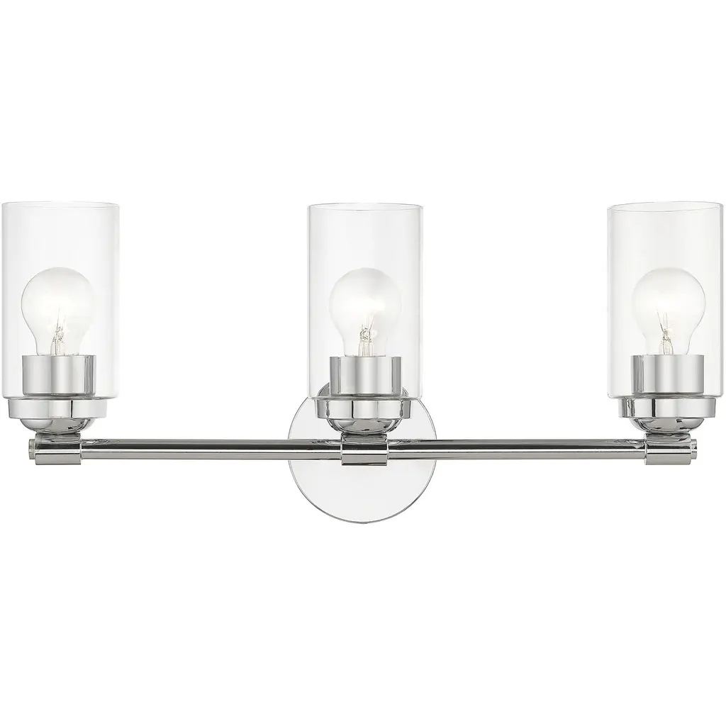 Hinkley Miley Medium Three Light Vanity, Chrome With Clear Glass