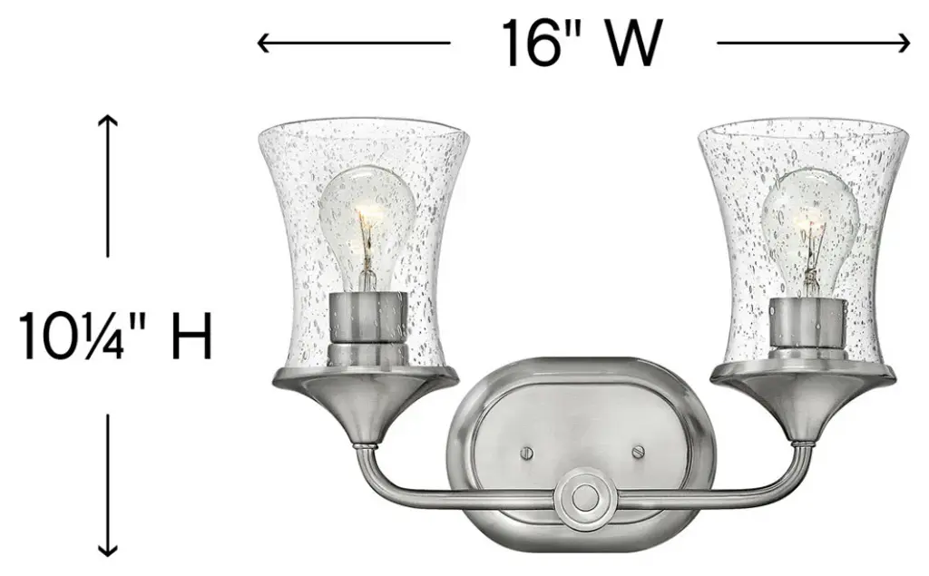 Hinkley Thistledown Small Two Light Vanity, Brushed Nickel With Clear Glass