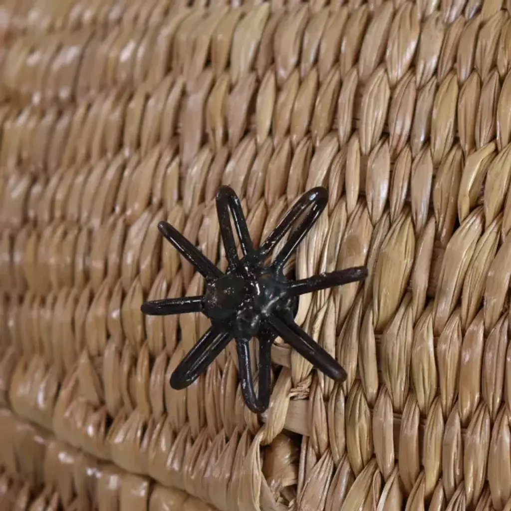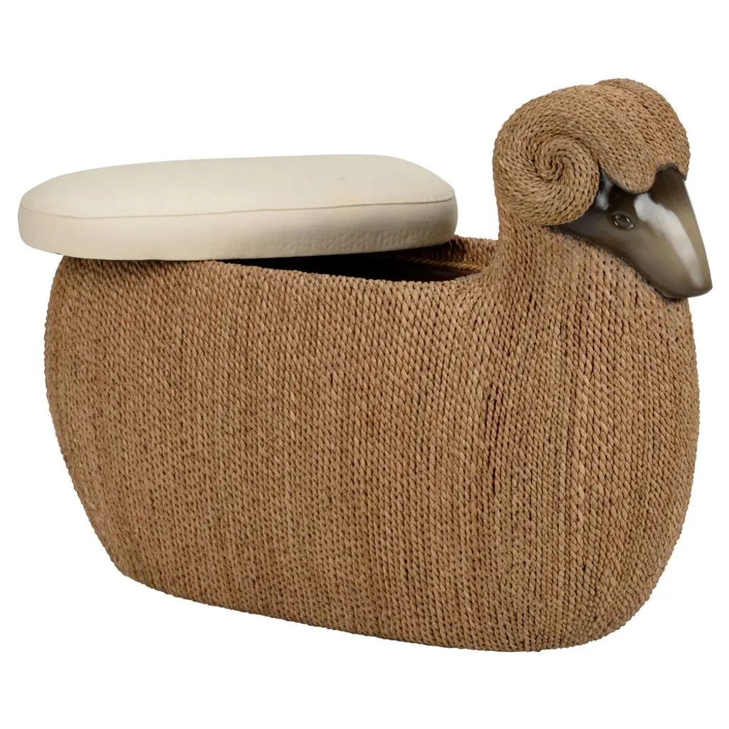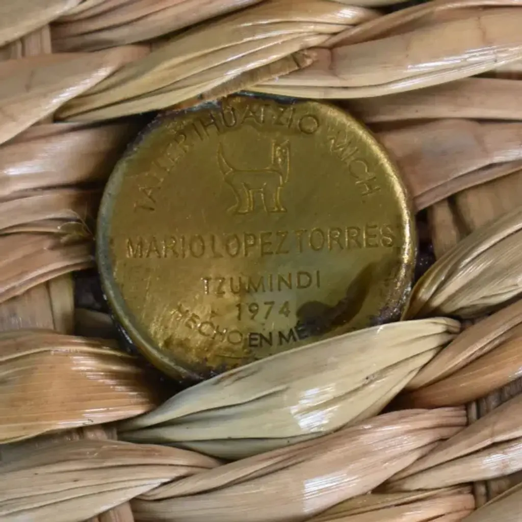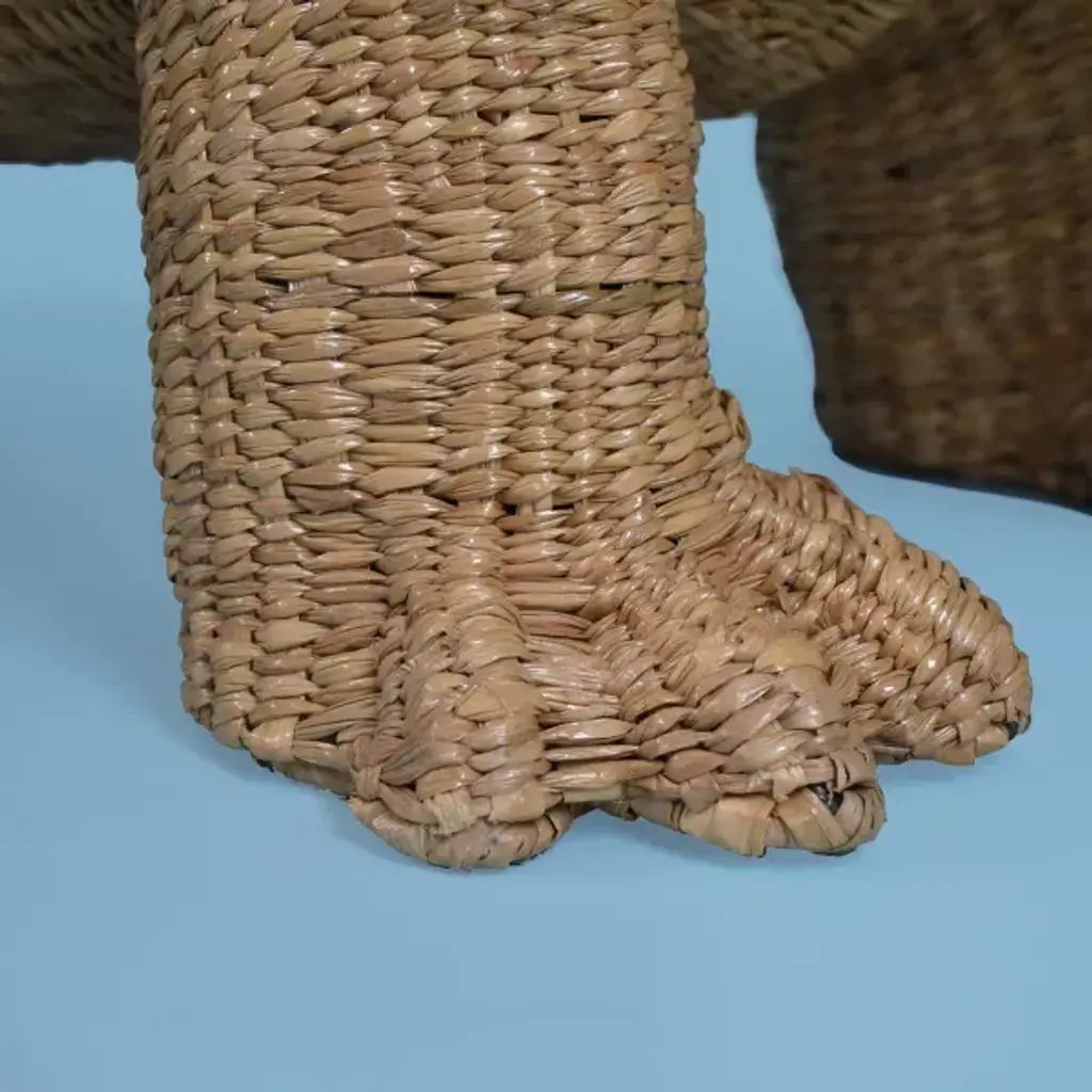 Mario Lopez Torres Hippopotamus. There are minor imperfections to the hand-made woven rattan. Signed Mario Lopez Torres Est. 1974. Brass accents, top opens. (see photos)