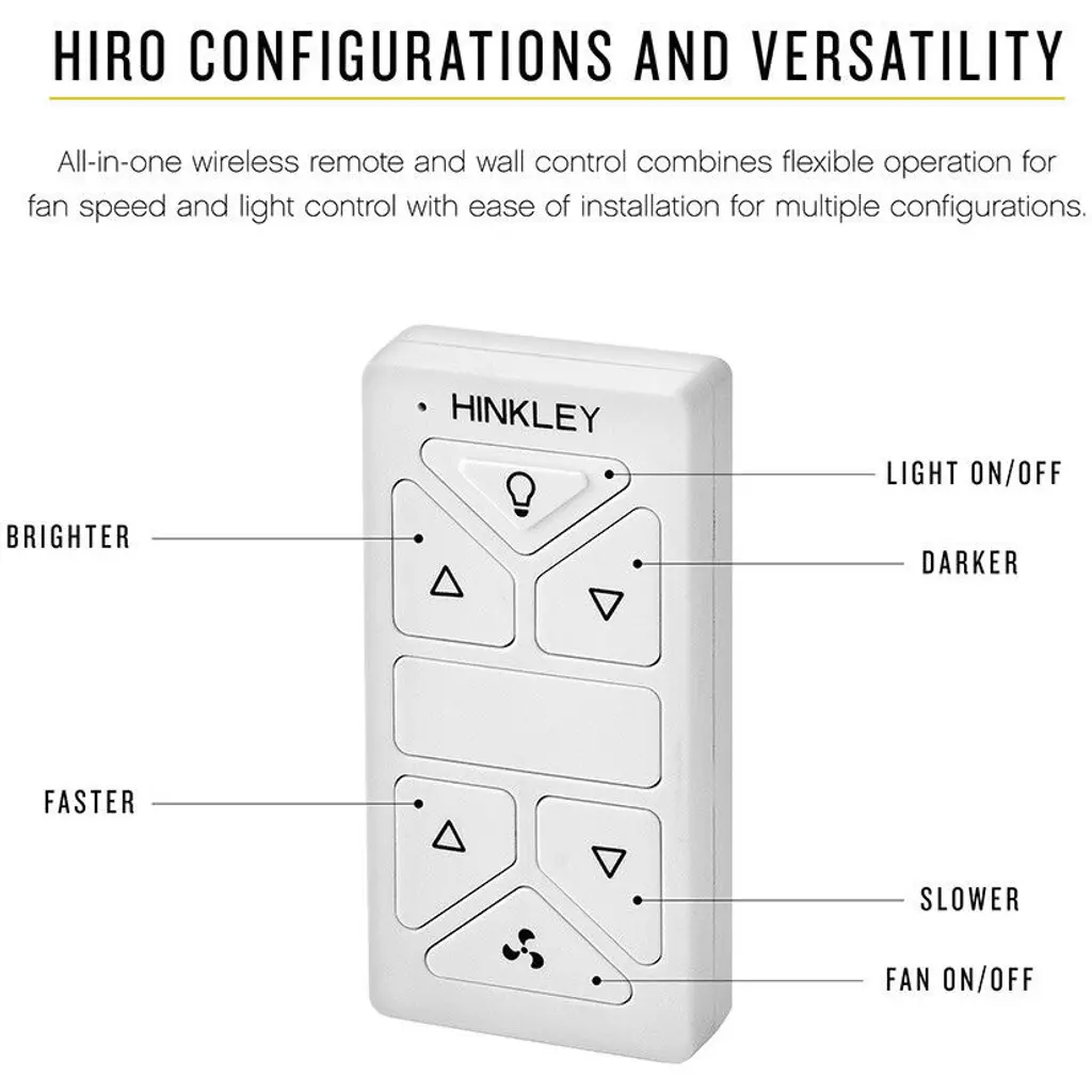 HIRO’s all-in-one wireless remote and wall control combines flexible operation for fan speed and light control with ease of installation for multiple configurations. Versatile and easy-to-use, HIRO requires no wires, is compatible with all Hinkley fans, and incorporates WiFi and highly-reliable RF technology – ensuring seamless communication between system components.
