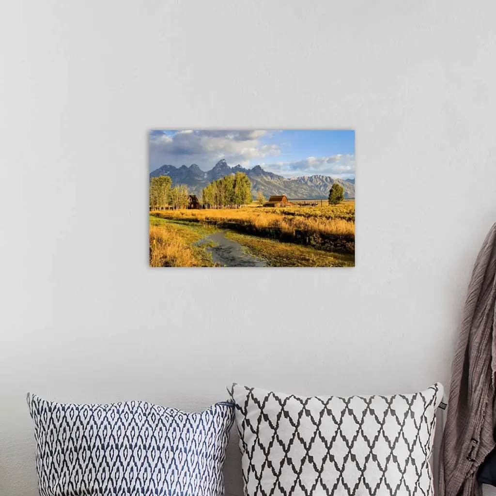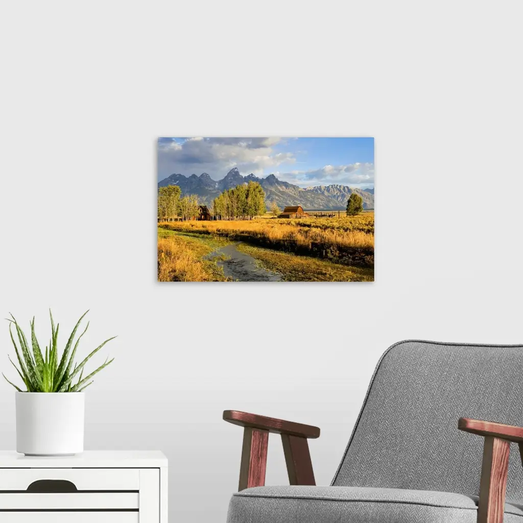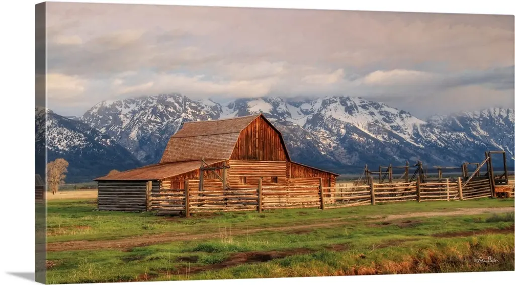 Historic Barn on Mormon Row and Teton Mountain Range, Grand Teton National Park, Wyoming, USA