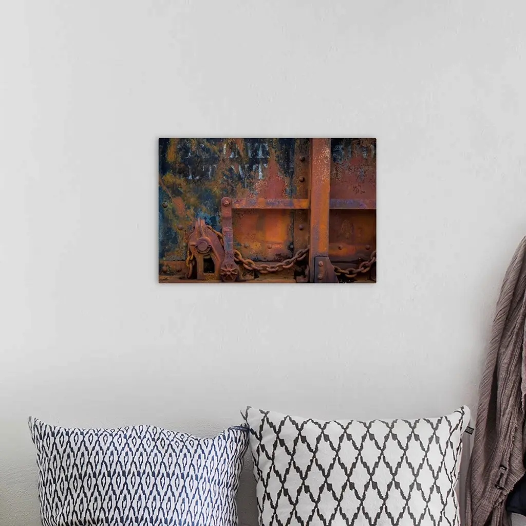 Close up detail of rusted metal of an old train.