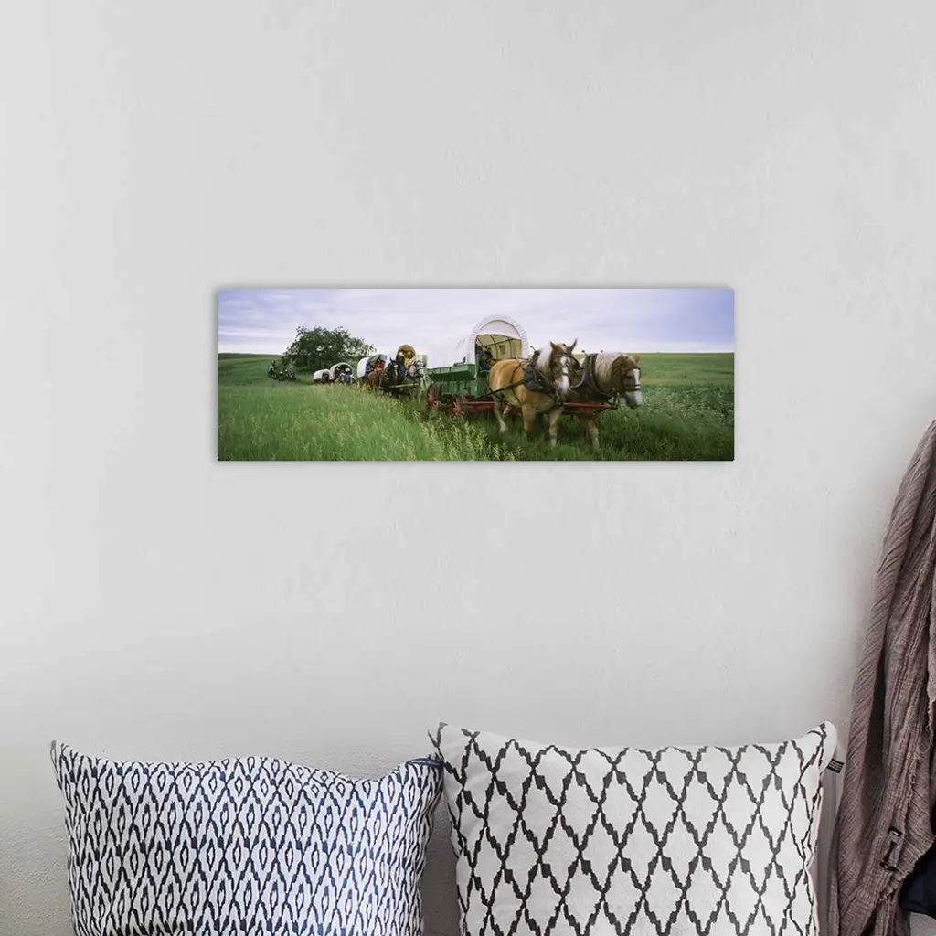 Historical reenactment, Covered wagons in a field, North Dakota wall art for home and office decor. Discover canvas art prints, photos, mural, big canvas art and framed wall art in GreatBigCanvas.com's varied collections.