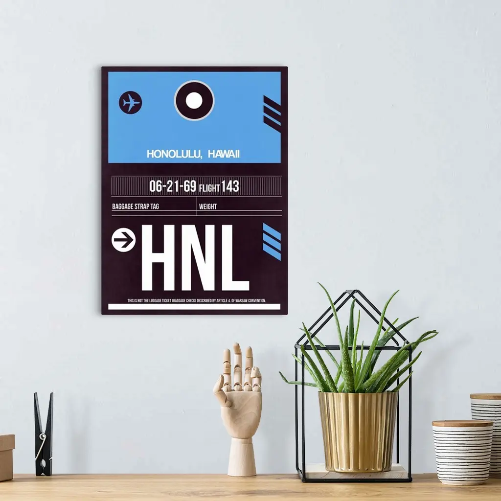 HNL Honolulu Luggage Tag II wall art for home and office decor. Discover canvas art prints, photos, mural, big canvas art and framed wall art in GreatBigCanvas.com's varied collections.