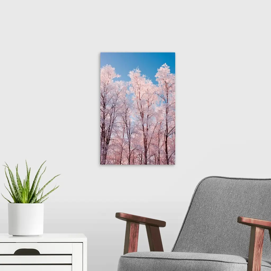 Hoarfrost covered birch trees, Winter, Russian Jack Park, Anchorage, Alaska.