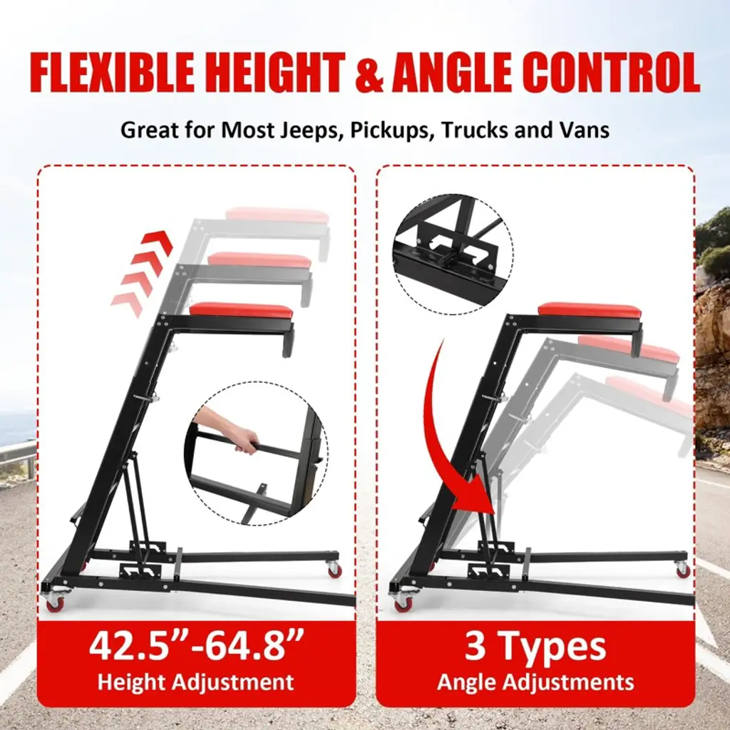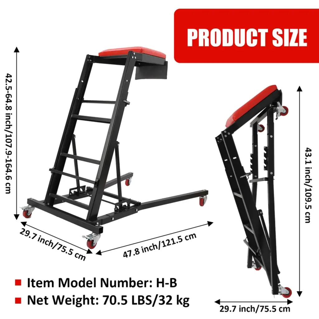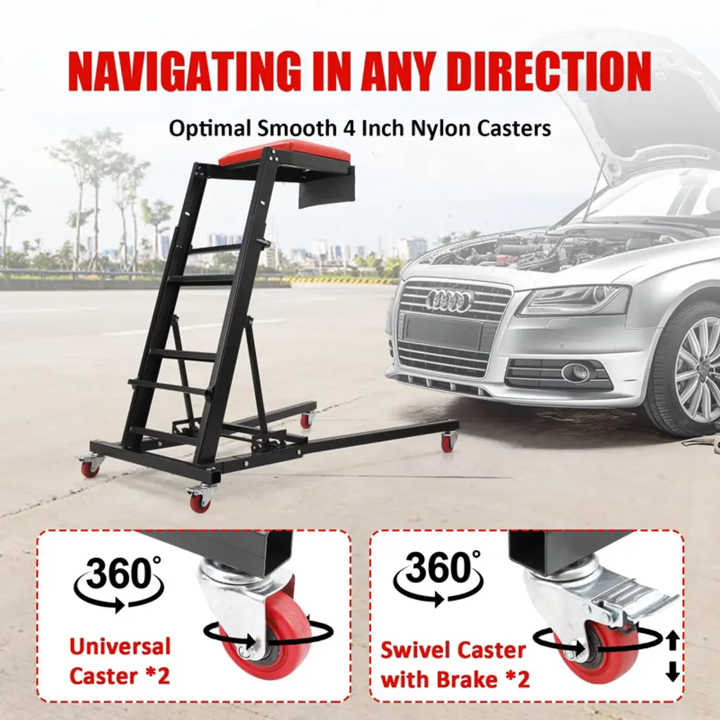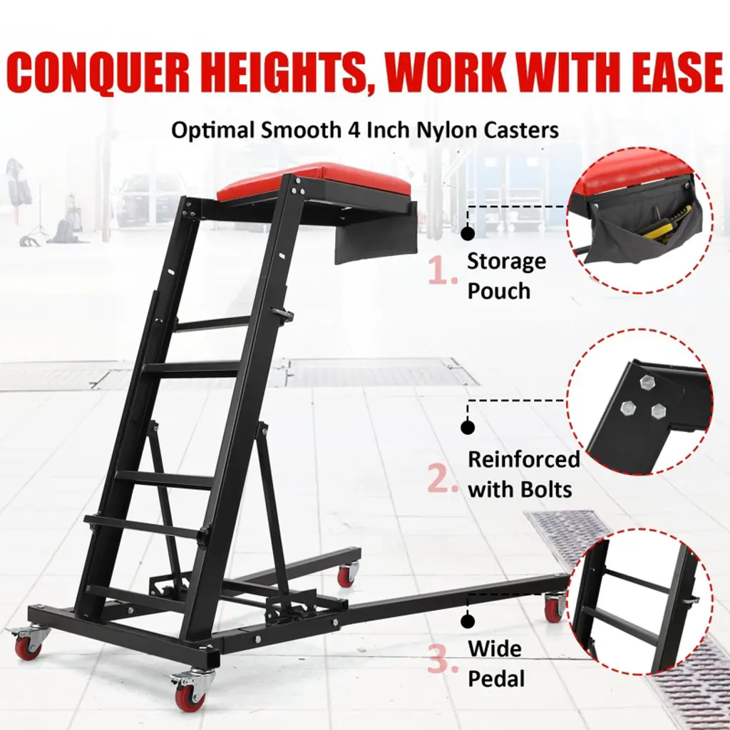 added a tool pouch to the top side creeper, Allows you to store more tools, facilitating the repair process. Heavy Duty High Creeper Capacity (400Lb) Adjustable Height Foldable Creeper with Caster Wheels,Topside Automotive Engine Creeper Black
