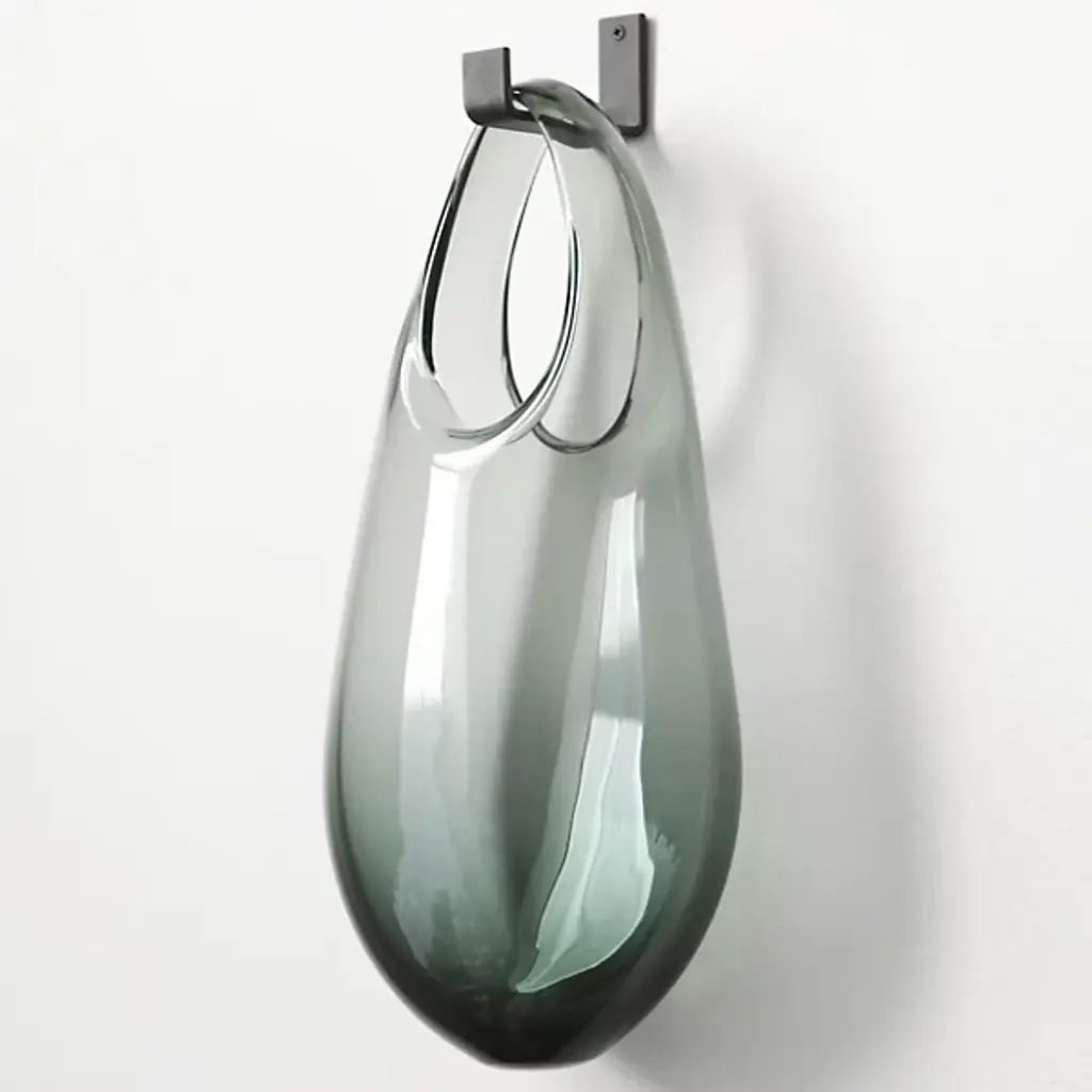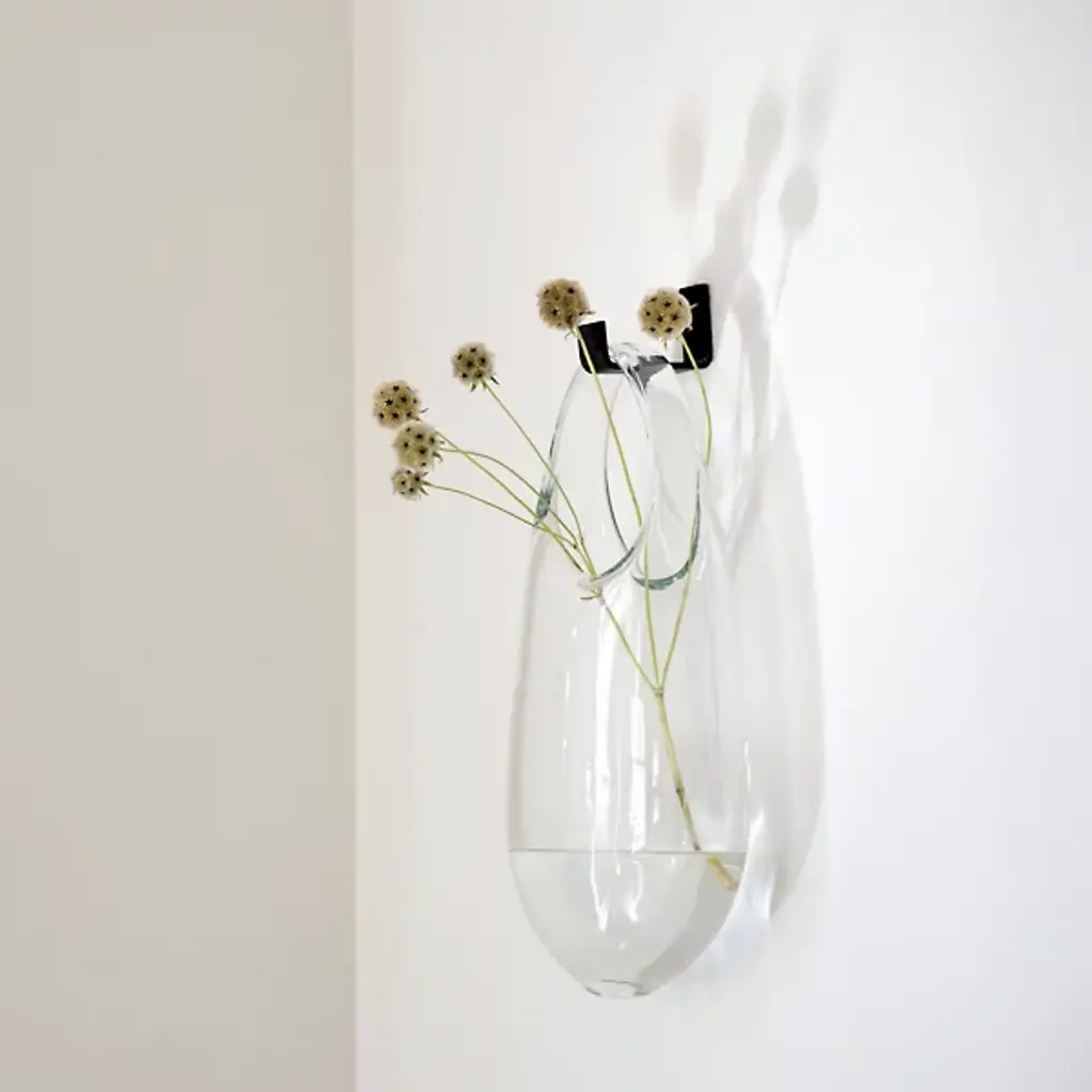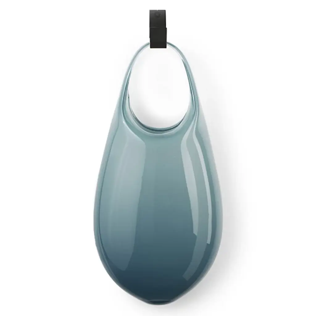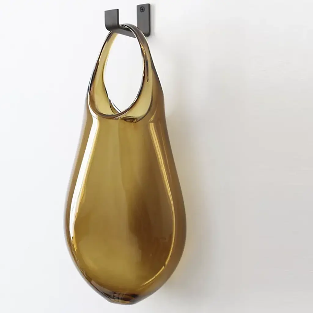 The “Hold” series of colored glass vessels features organic shapes with clarity and individuality that embody the technique of Czech glass masters. The Hold Vessel is available in Clear, Amber, Aqua, Chartreuse, Olivin, Pink, Tangerine or Turquoise with your choice of a Black Patina or Chrome wall hook.