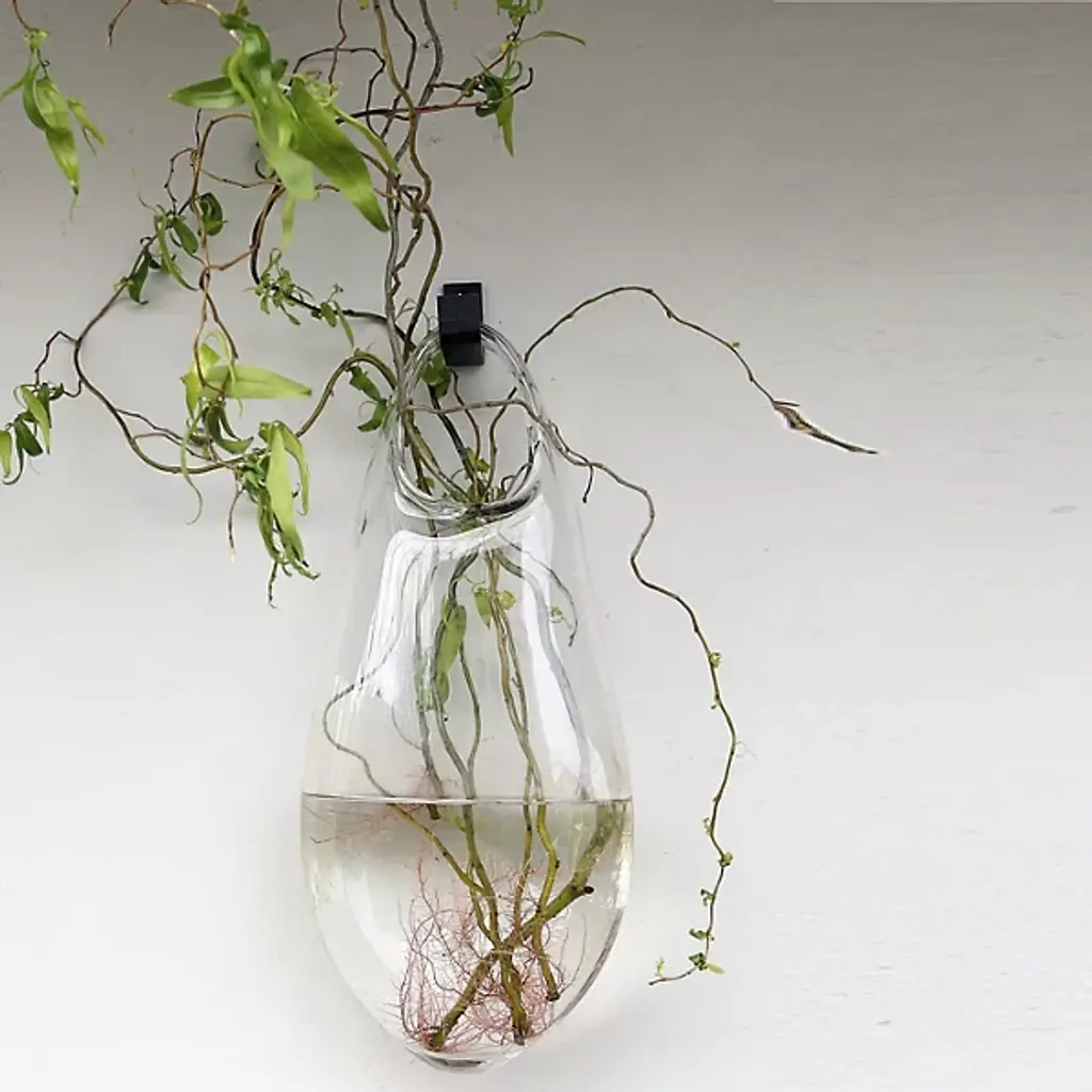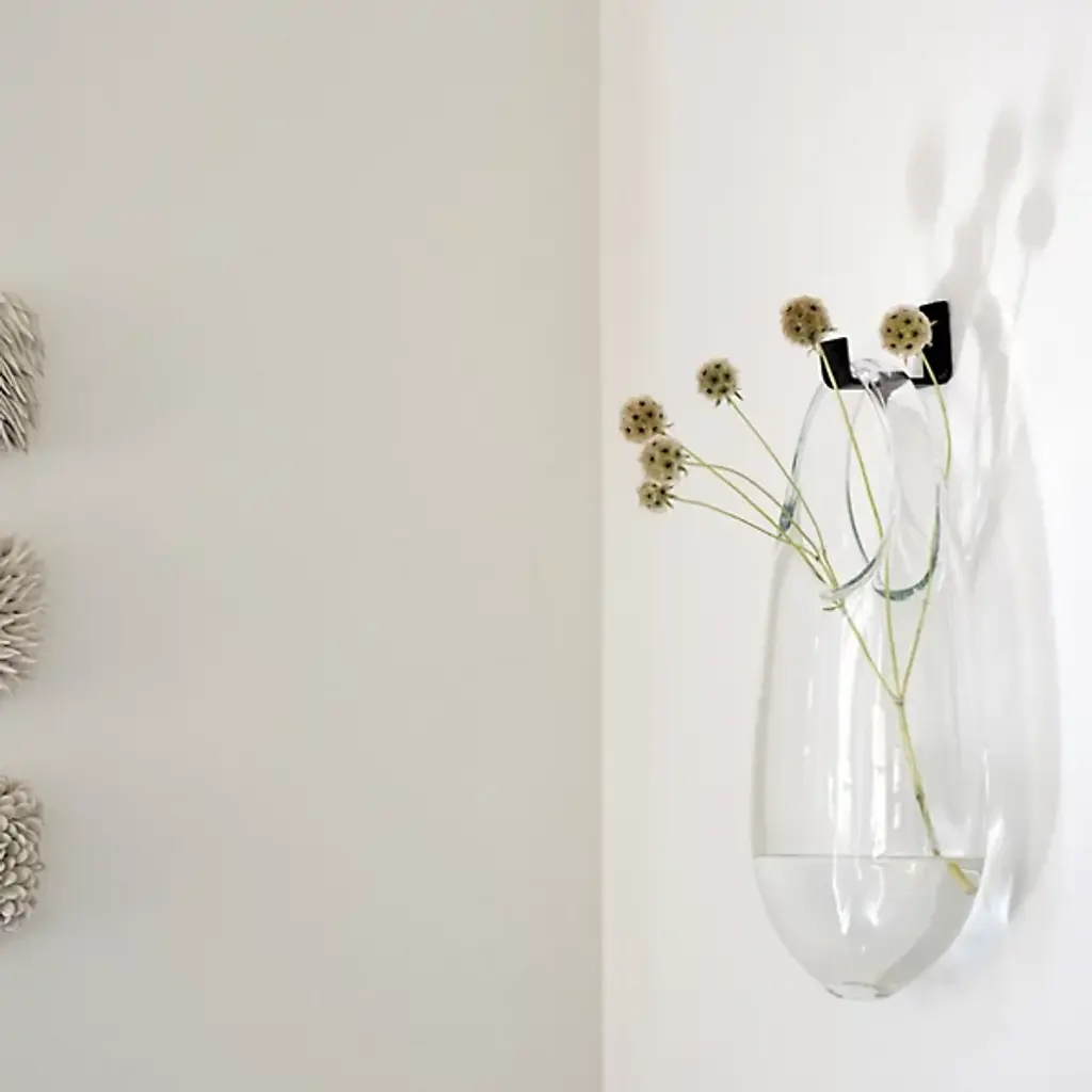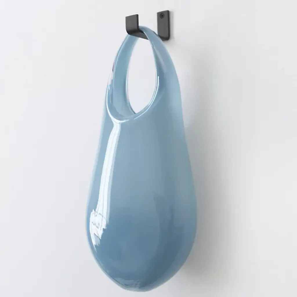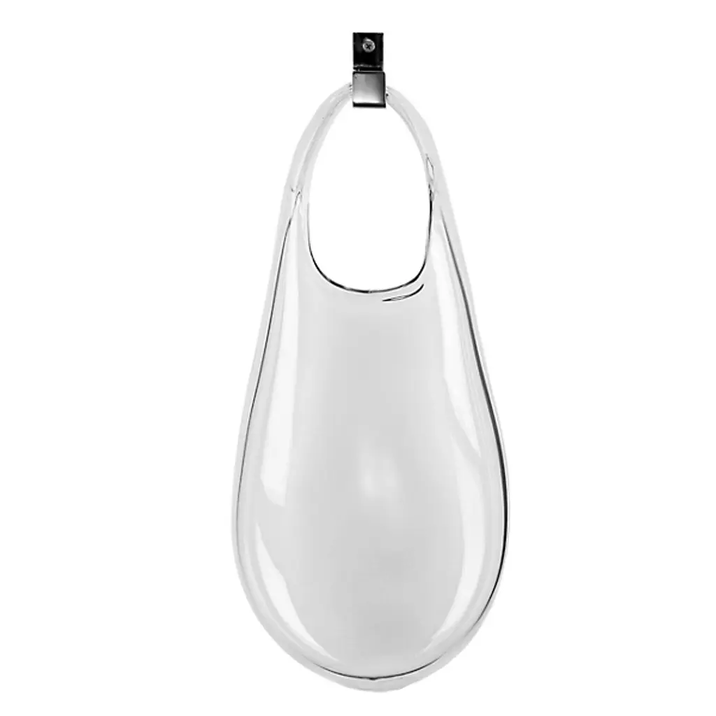 The “Hold” series of colored glass vessels features organic shapes with clarity and individuality that embody the technique of Czech glass masters. The Hold Vessel is available in Clear, Amber, Aqua, Chartreuse, Olivin, Pink, Tangerine or Turquoise with your choice of a Black Patina or Chrome wall hook.