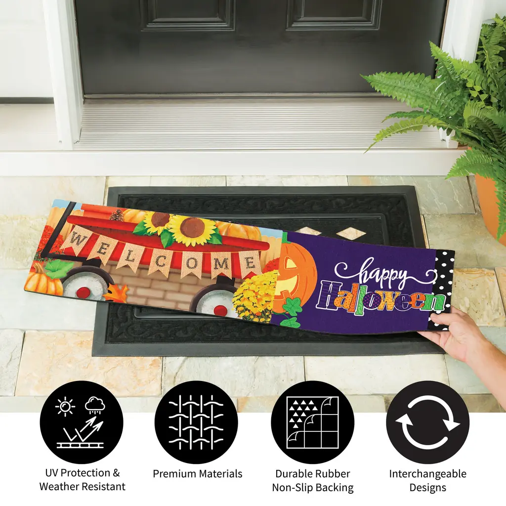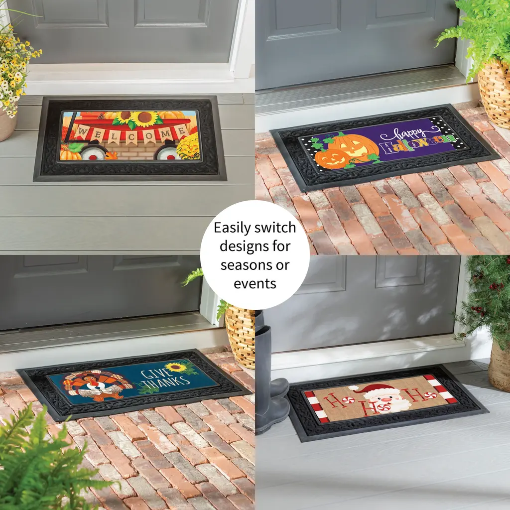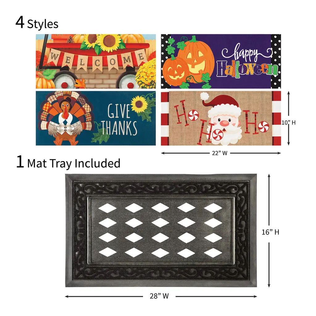 Dress up your doorstep for fall and winter with this Holidays Sassafras Mat Set. With designs ranging from Halloween to Christmas, this set offers something festive for every fall and winter holiday. These durable and vibrant doormats make seasonal decorating a breeze! Sassafras mats are constructed of durable rubber for a non-slip grip and extra protection against the elements. Now you can get a stunning seasonal selection of these top sellers in one convenient set. Easily change the look and feel of any space and update your décor by simply changing mats.