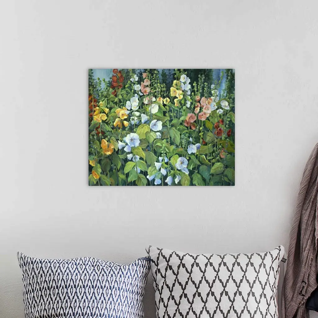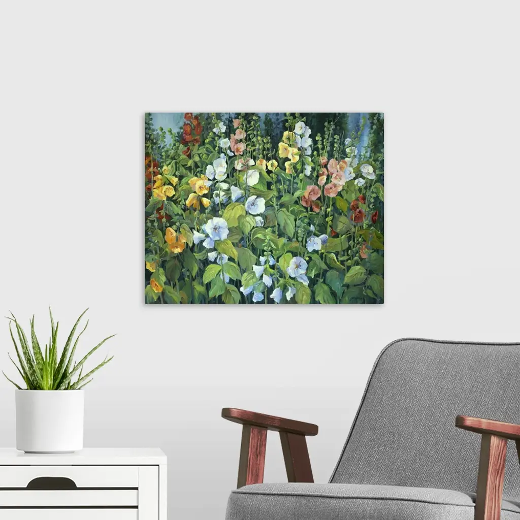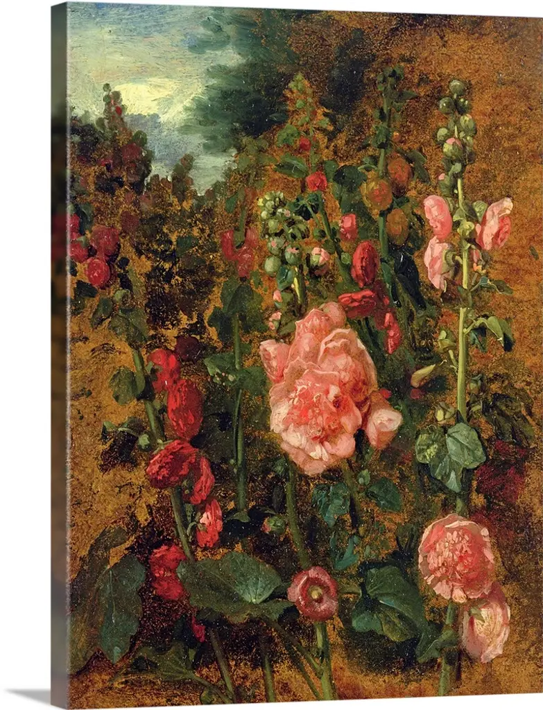 Hollyhocks, c.1990-2005. (Originally oil on canvas.)
