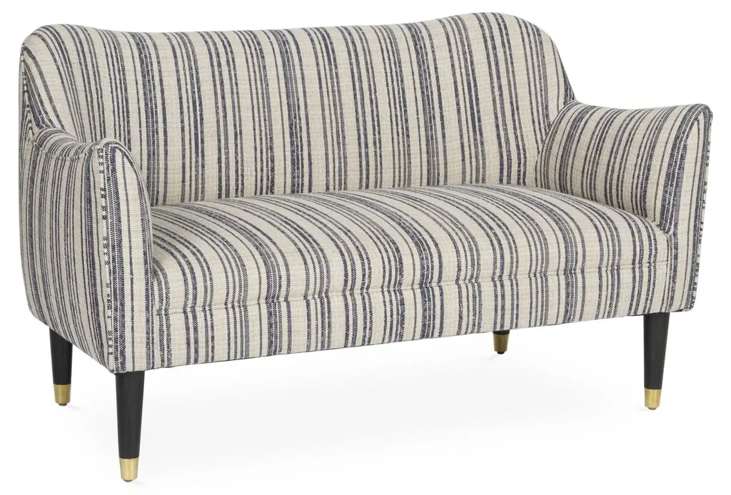 Exclusive to One Kings Lane: Made in the USA, this swoop-arm chair has a deep, generously cushioned seat, but its overall proportions enable it to fit easily into smaller spaces. The turned legs and tailored stripes provide timeless elegance.