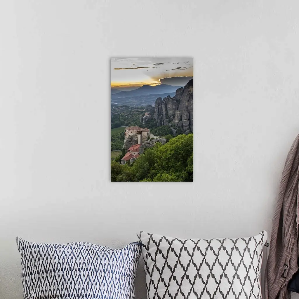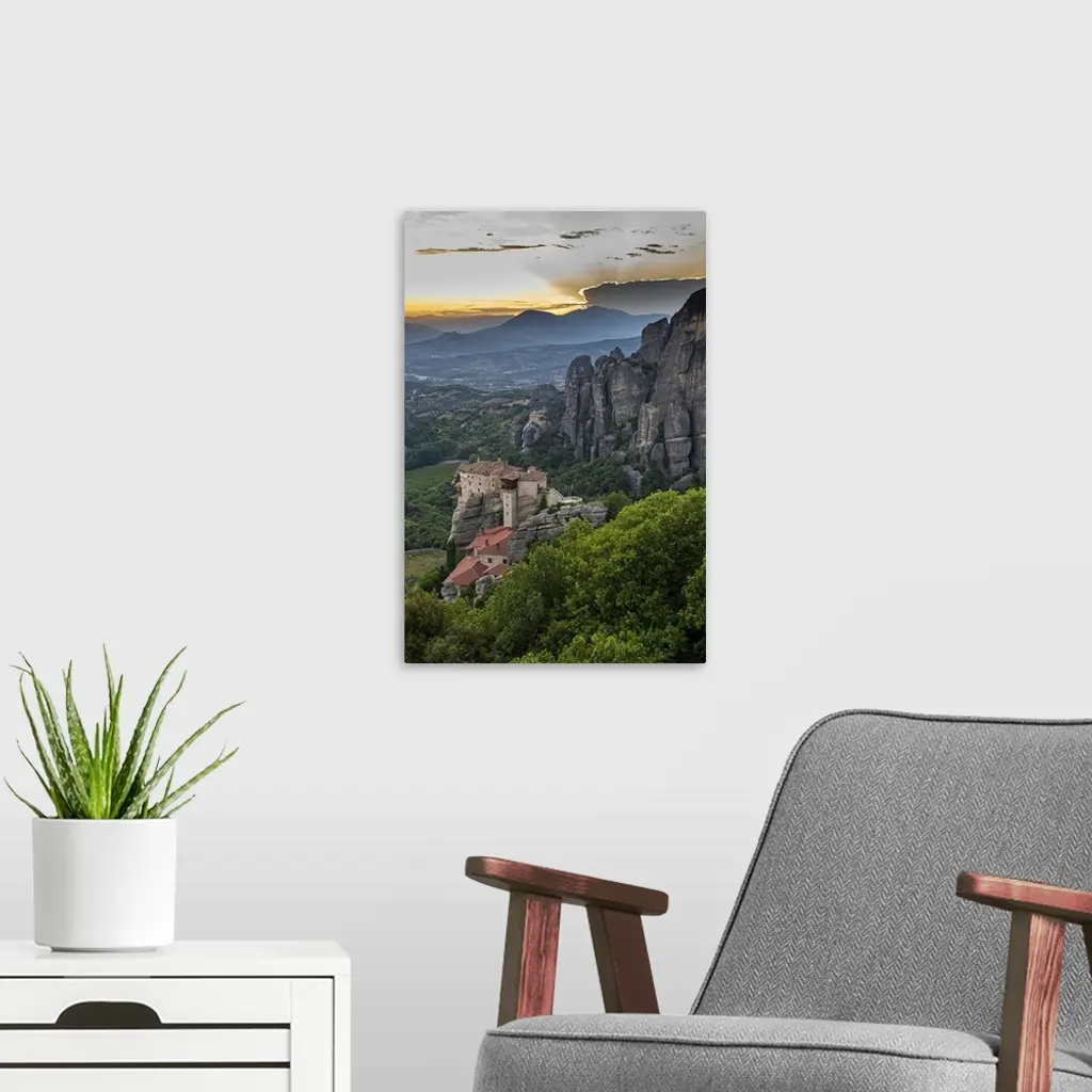 Holy Monastery Of St. Nicholas Anapafsas At Sunset, Meteora Monasteries, Greece, Europe