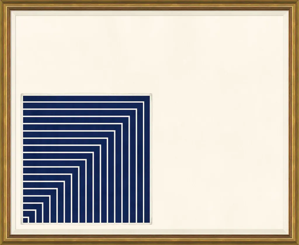 This tribute to artist Frank Stella, a master of minimalist abstraction, makes savvy use of white space and will command attention on its own or as part of a gallery wall. It arrives framed and ready to hang.