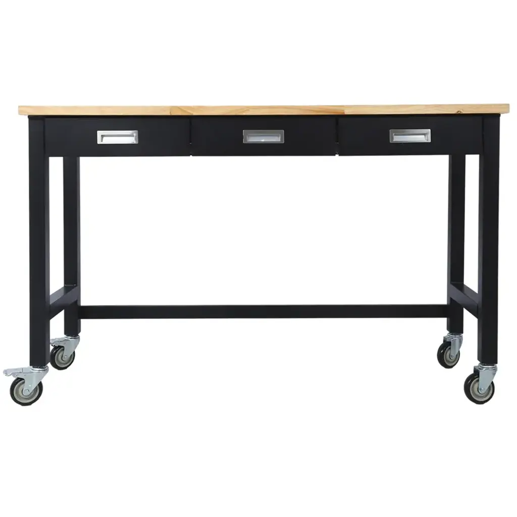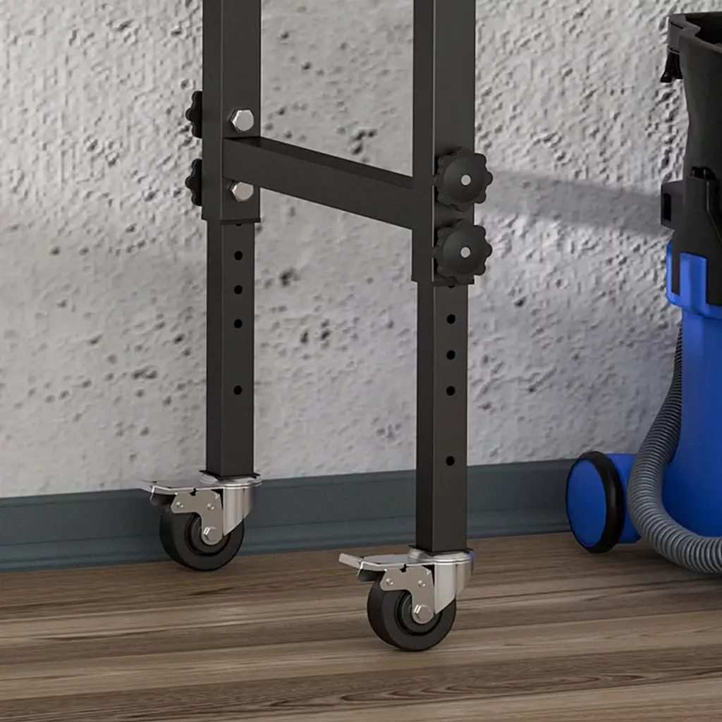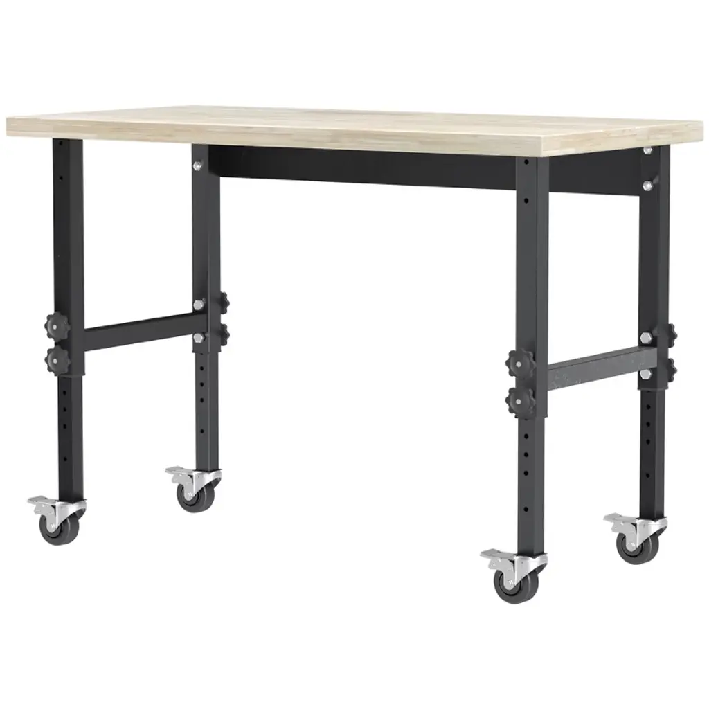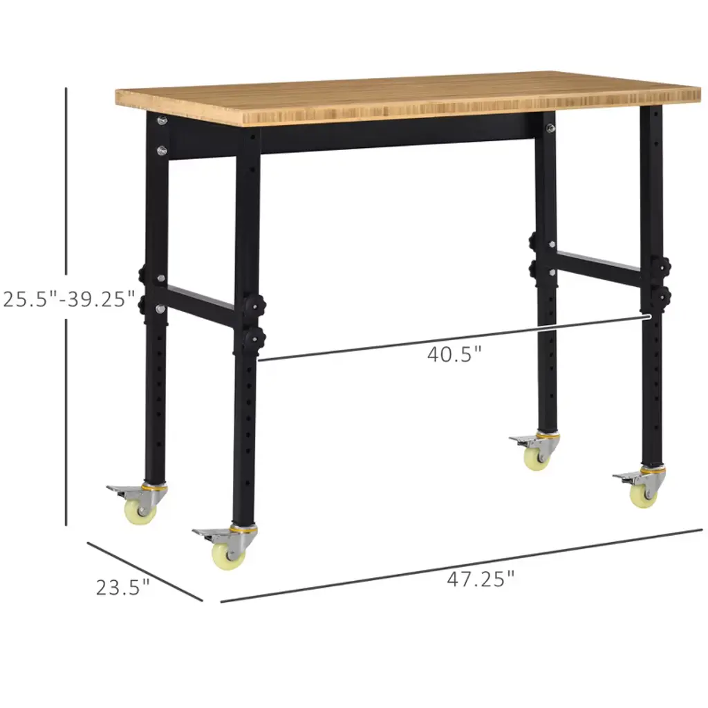 Reinvigorate your garage workspace with this HOMCOM rolling workbench. The work surface is made from heavy-duty bamboo wood and measures 1.5 inches thick for maximum sturdiness. Designed with solid steel legs, this standing table can handle all tasks from daily use to heavy-duty projects. Height can be adjusted according to your different working needs. Choose HOMCOM work bench to make your job much easier!