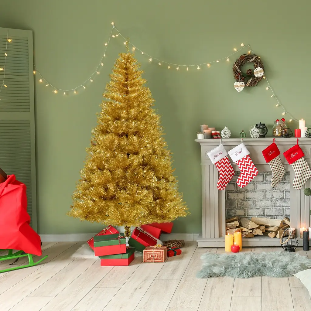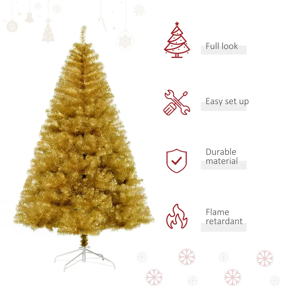 Homcom 6' Artificial Gold Christmas Tree With Stand - 7.5 Foot