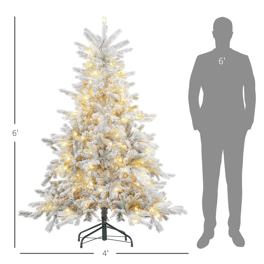 Homcom 6Ft Prelit Snow Flocked Artificial Christmas Tree With Warm White Led Light And 1321 Tips, Metal Base - 6 Foot