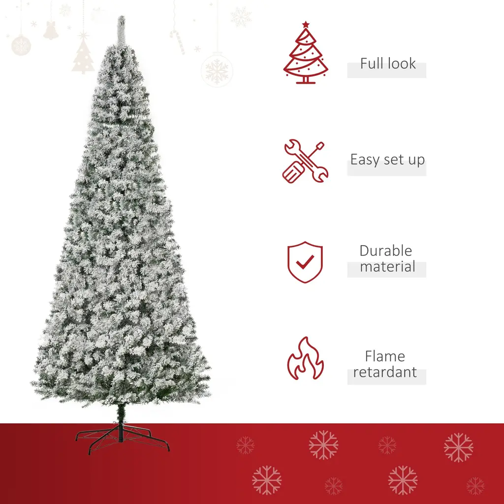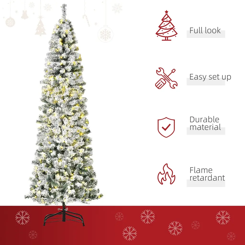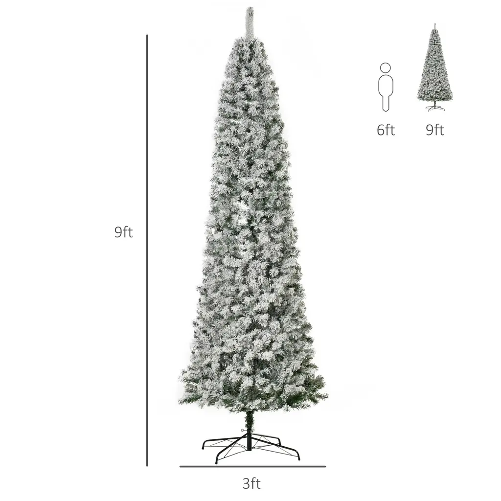 Homcom 6Ft/7ft/9ft Slim Flocked Christmas Tree With Lights, Skinny Christmas Tree With Stand - 9 Foot