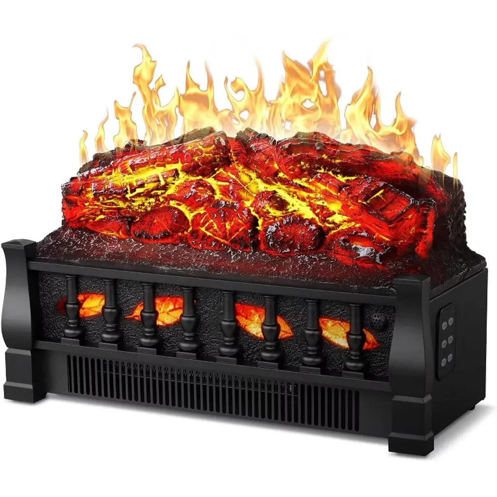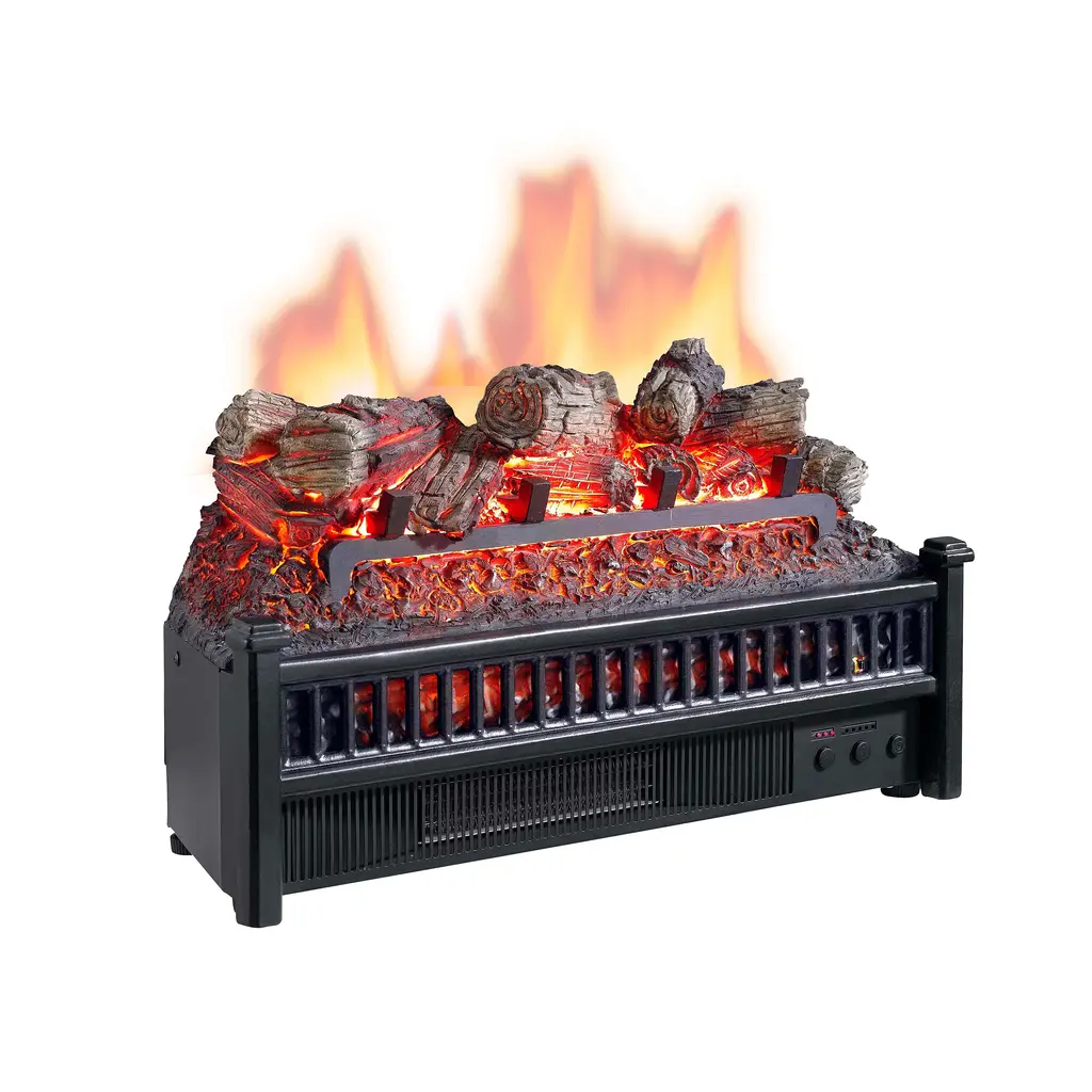Place this Home Hearth Log Set Infrared Quartz Heater with realistic ember bed into an existing fireplace and watch the dancing flames project onto the back of the hearth. The realistic split oak log set and ember bed sit in a finished fire grate and feature a rolling, pulsating flame effect that works with or without heat. Provides supplemental zone heating up to 1,000 square feet. The infrared heat helps to maintain the natural humidity within the air, resulting in comfortable heat without drying out the room's air. No hookups or vents required, just plug it in. Control the log set from anywhere in the room using the included remote control.