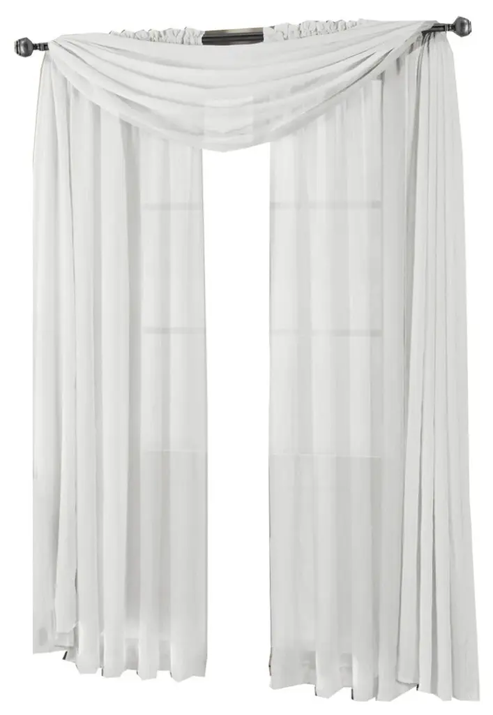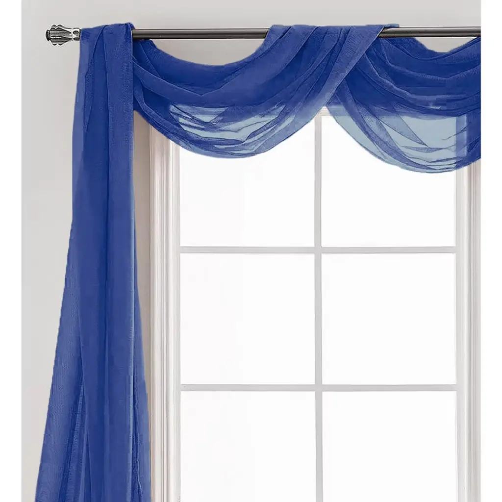 These semi-sheer window scarves offer long-lasting strength and resistance to tearing. In addition to adorning windows, these scarves can be utilized for outdoor, party, or wedding decorations, adding an elegant and stylish effect. SIZE: This sheer scarf measures 37" x 216" inches. MATERIALS: Crafted from high-quality, 100% polyester voile fabric, these semi-sheer window scarves offer long-lasting strength and resistance to tearing. In addition to adorning windows, these scarves can be utilized for outdoor, party, or wedding decorations, adding an elegant and stylish effect. CARE: Machine-washable on a delicate cycle, these scarves maintain their straightness and shape without wrinkling or needing ironing, ensuring hassle-free maintenance.