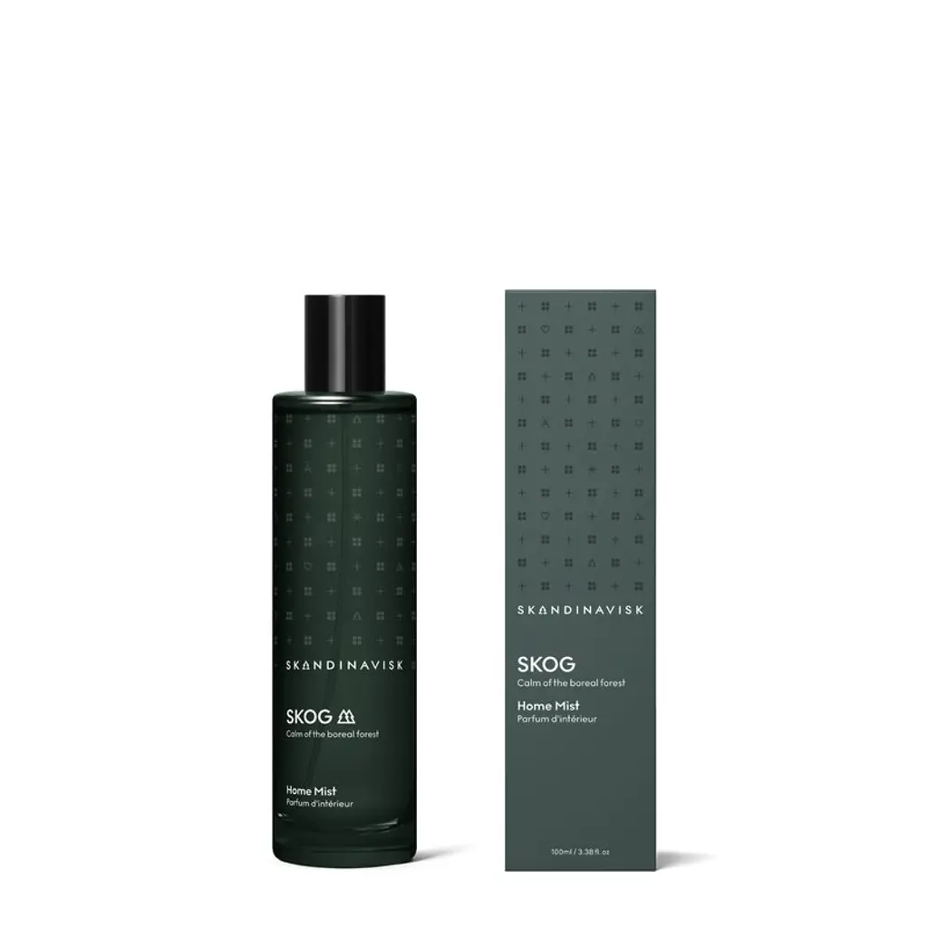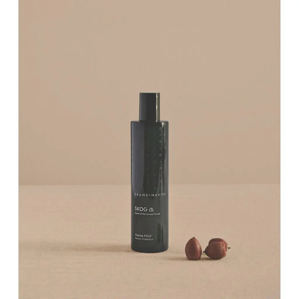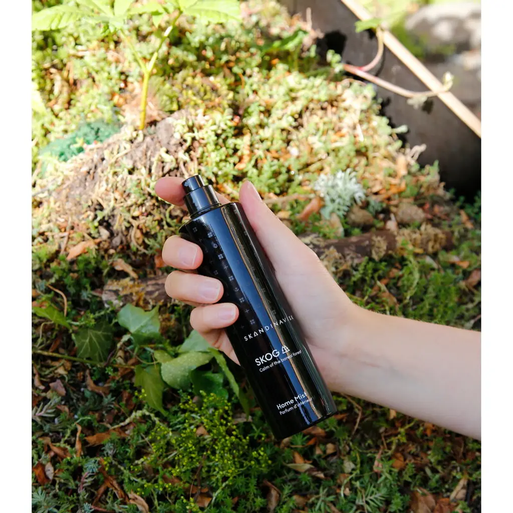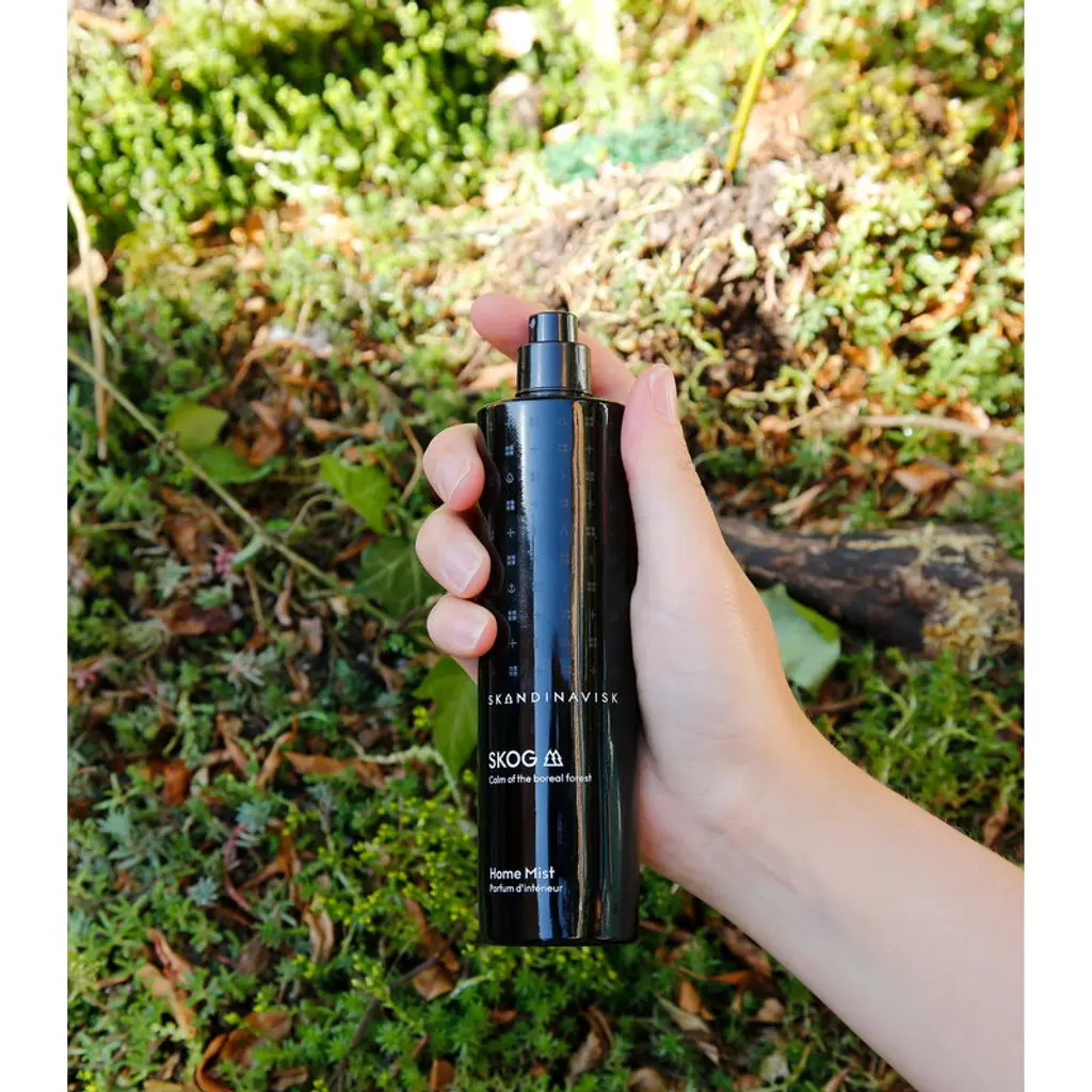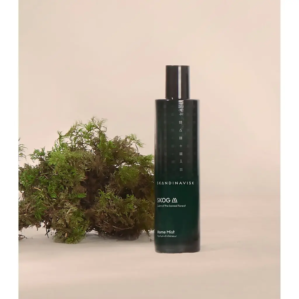 Skandinavisk's Skog home mist features notes of pine, fir, birch sap and woodland lily of the valley. Named after the Swedish and Norwegian words for "forest", Skog depicts the magical scents lingering in the Scandinavian wilderness. Packed in a beautiful glass spray bottle, this home mist disperses a delightful scent into your space with just a couple of spritzes. You can use the room fragrance spray worry-free in all indoor areas since it won't leave any stains on textiles or other surfaces.