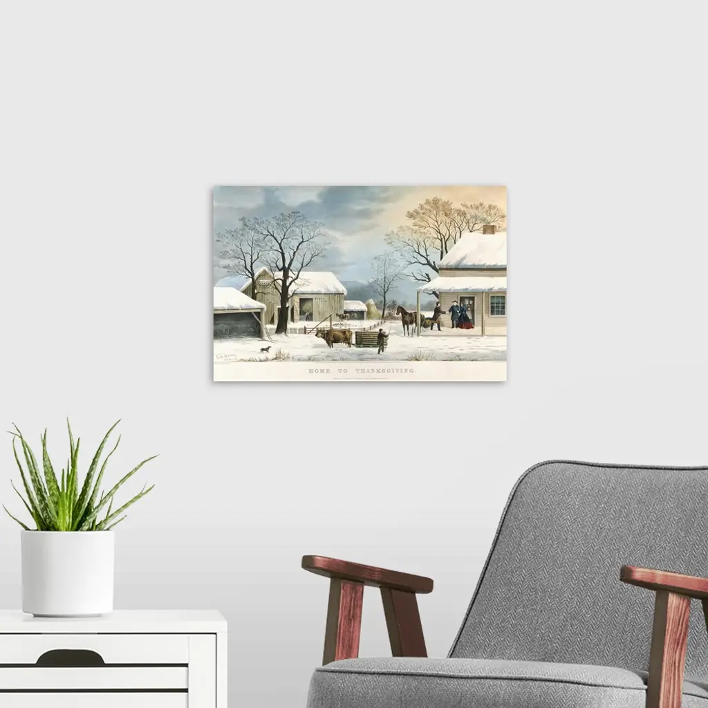 Home to Thanksgiving, 1867 (originally hand-coloured lithograph) by Currier, N. (1813-88) and Ives, J.M. (1824-95)