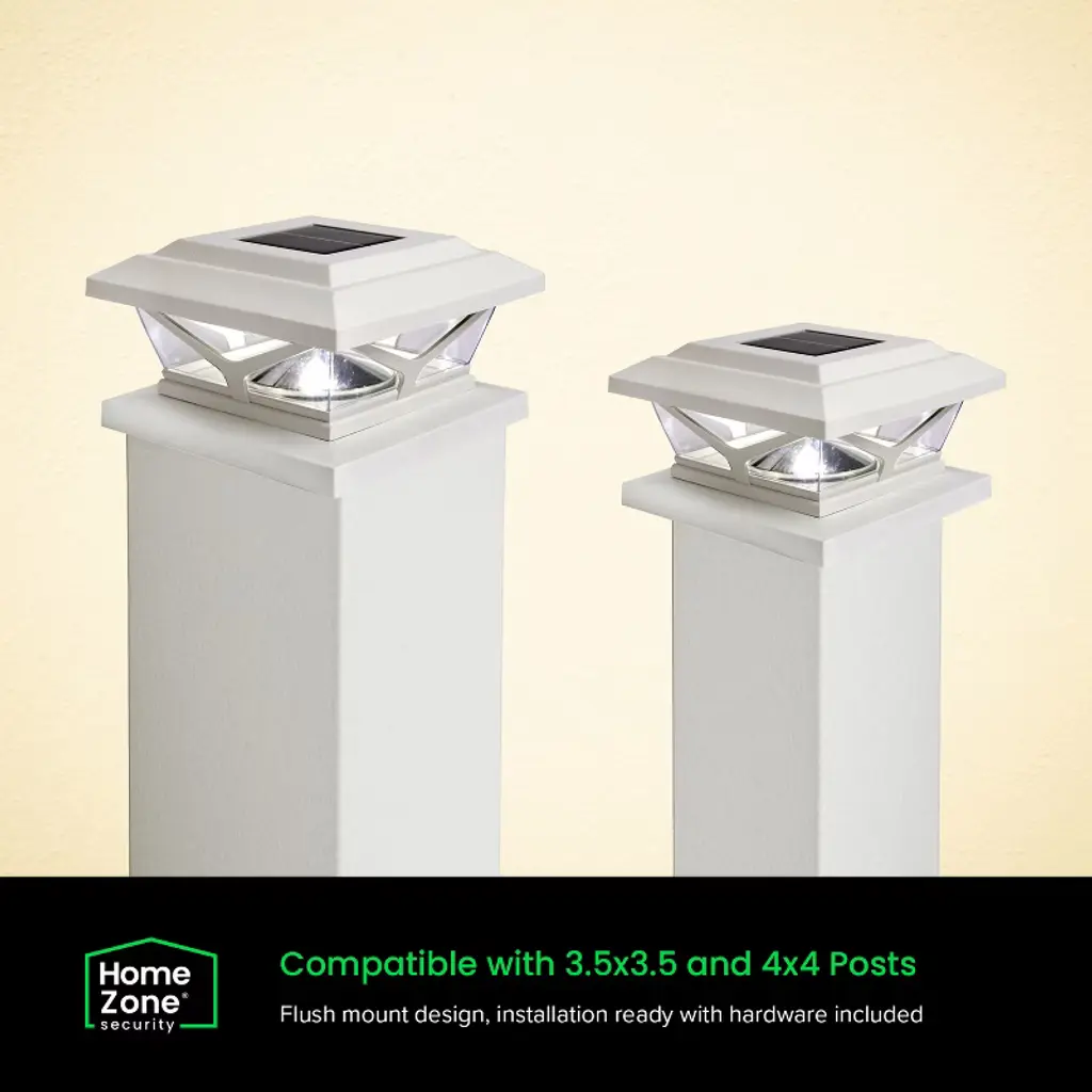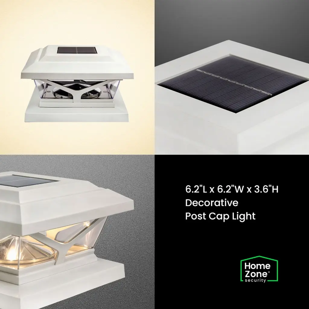 Home Zone Security® Crown-style Solar-powered Led Post Cap Light With Adjustable Color Temperature, 4 Pack (White)