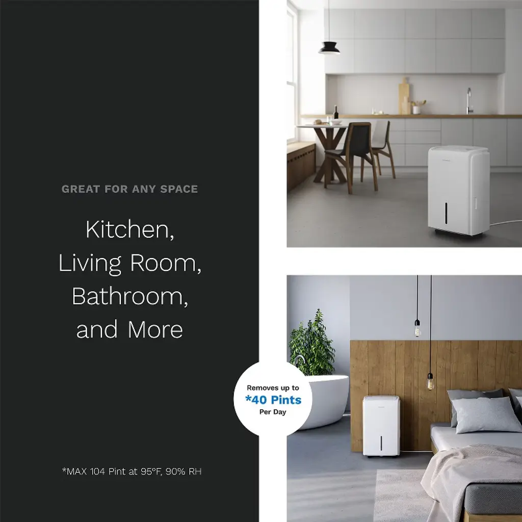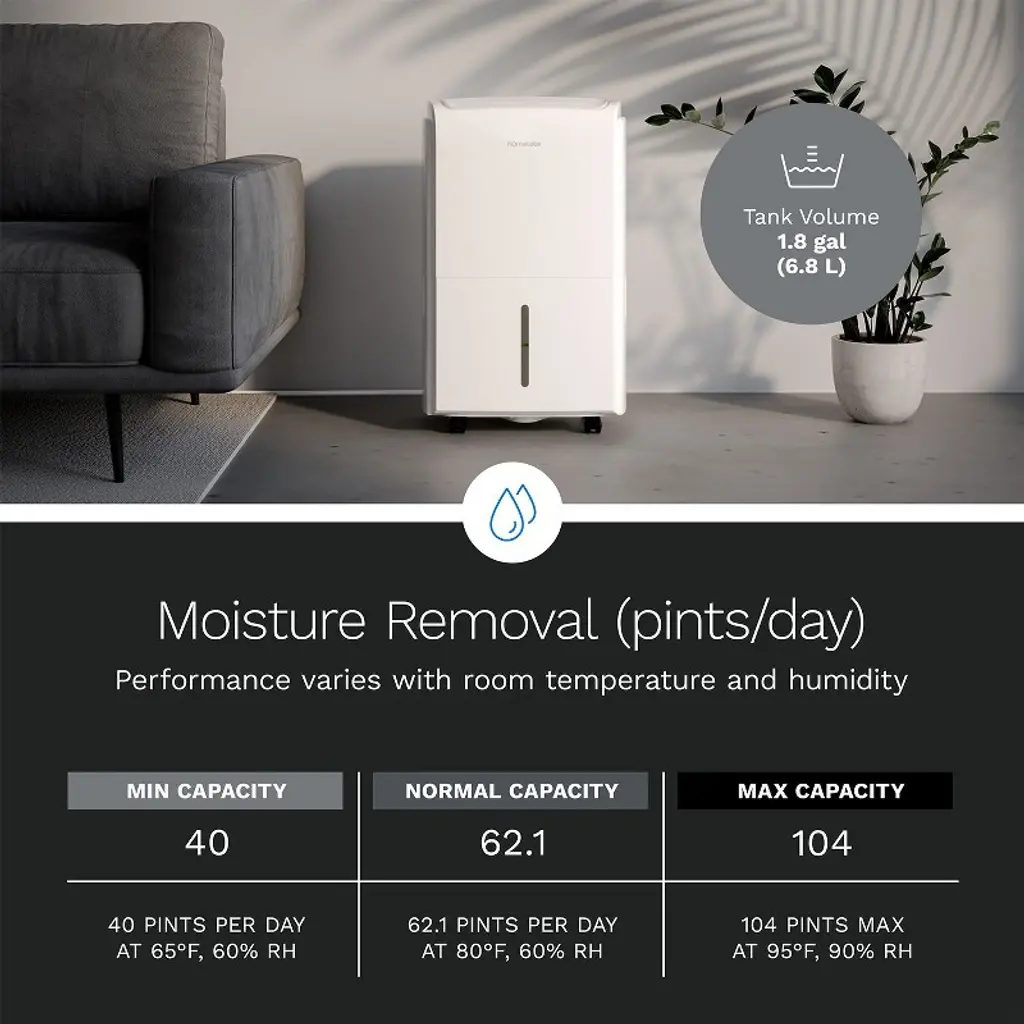 Homelabs 40 Pint Dehumidifier With Pump For Up To 6,000 Sq Ft Rooms (Max 104 Pint At 95°f, 90% Rh) – For Medium To Large Rooms And Basements