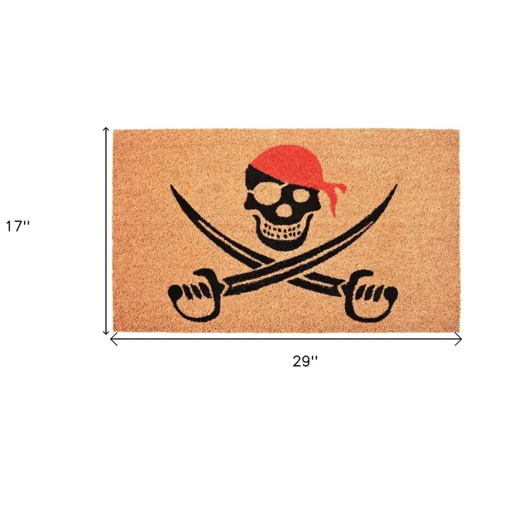 Homeroots 17" X 29" Natural Red And Black Coir Pirate Outdoor Halloween Door Mat