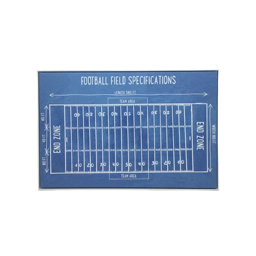 The football field white floater frame print wall art is the perfect decorative accessory for your home. This watercolor painting is a way to express your artistic style and add some fashion to your walls. Reproduced for you on canvas, this hanging decorative accent will be a trendy and fashionable way to dress your walls. Utilize this opportunity to create a focal point in the room with this fabulous wall decor option. Instantly liven up your space with this art that brings color and dimension to your walls. 24-inch h x 36-inch w x 1.37-inch d.Dress up your walls with color and dimension that is ideal for bedroom, den, playroom, office, or nursery.Dress up your walls with color and dimension.Features a white floater frame construction for a finished appearance.This football themed hanging wall art helps you to personalize your space with design.This special art is printed on canvas, and comes ready to hang with hardware on the back for easy mounting.Wall art is a quick and easy way to change up the look and feel of your room.