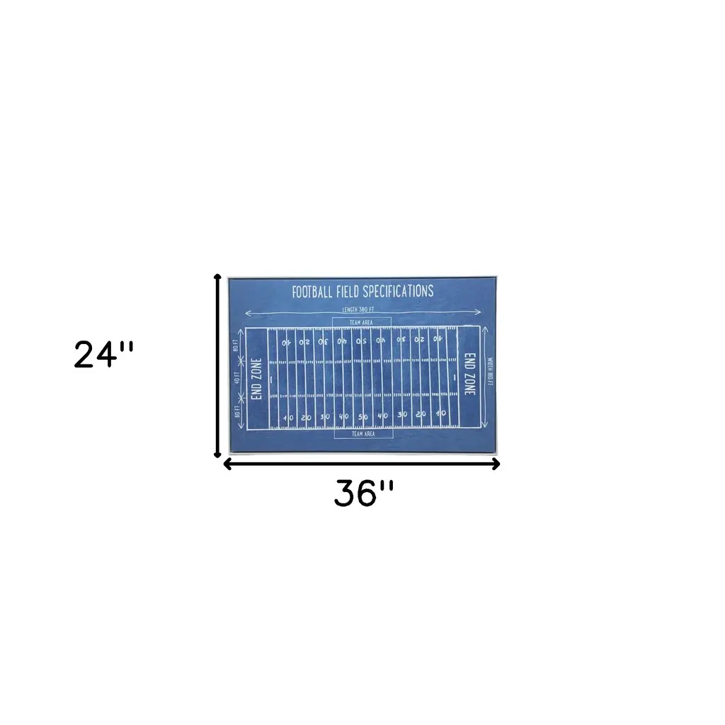 Homeroots Blue Football Field White Floater Frame Print Wall Art - 36' X '24' X '1.37