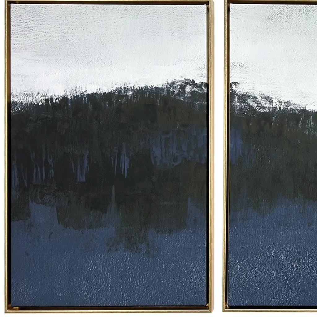 Unique and decorative, this set of three sapphire abstract gold floater frame wall art will leave a lasting impression. This watercolor trio is a visual artistic expression that allows you to decorate your space in style. Reproduced for you on canvas, this hanging decorative accent will be a trendy and fashionable way to dress your walls. Adding this modern and bold hanging wall art to your space to make your room feel more finished and attractive. Utilize this opportunity to create a focal point in the room with this fabulous wall decor option. 24-inch h x 48-inch w x 1.37-inch d.Features closed corner floating frame construction for a finished appearance.Hanging wall art helps you to personalize your space with design.This is a multi-piece set. Includes 3 pieces of art that are ideal for living room, hallway, bedroom, lounge, or office.This special art is printed on canvas.This striking and modern abstract wall art comes complete surrounded by a gold frame.Wall art is a quick and easy way to change up the look and feel of your room.