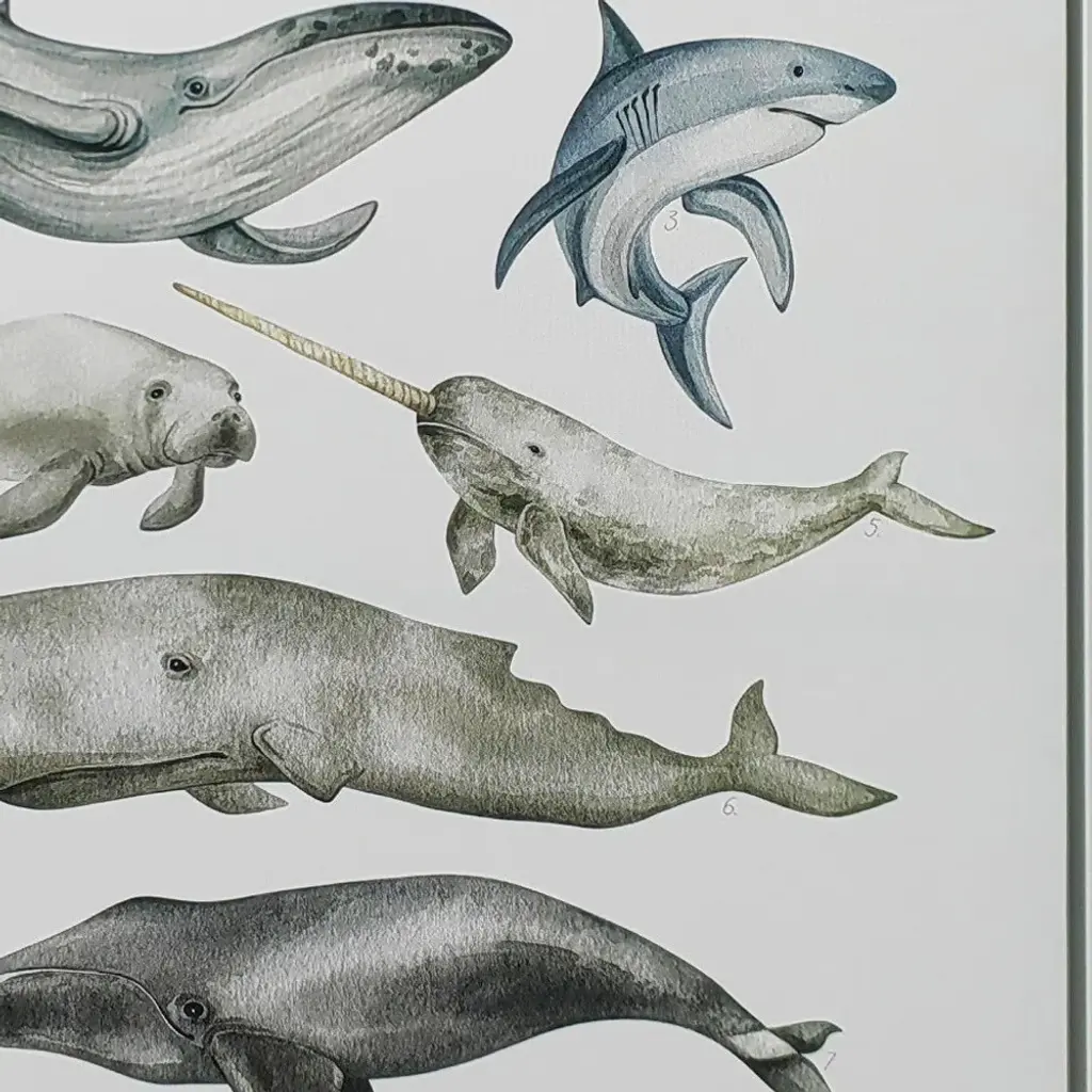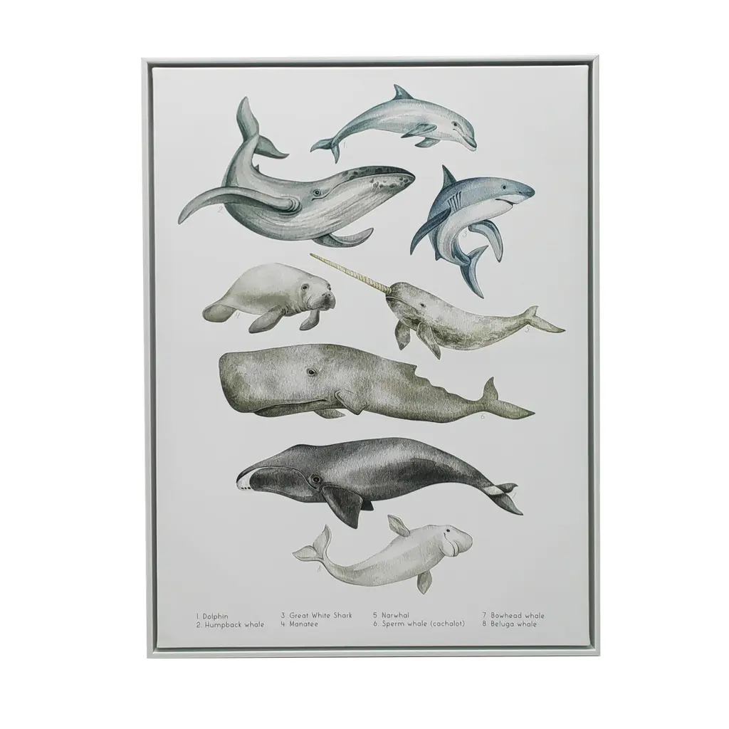 Add an air of fashion to your room and rejuvenate the space with this under the sea white floater frame print wall art. Update your walls with this great tropical sea life art. This watercolor print is a visual artistic expression that allows you to decorate your space in style. Reproduced for you on canvas, this hanging decorative accent will be a trendy and fashionable way to dress your walls. Utilize this opportunity to create a focal point in the room with this fabulous wall decor option and instantly liven up your space with this art that brings color and dimension to your walls. 24-inch h x 18-inch w x 1.37-inch d.Coastal / Nautical sea life wall art that includes a whale, shark, narwhal, dolphin, and more!Comes complete surrounded by a white floating frame.Dress up your walls with color and dimension that is ideal for living room, hallway, bedroom, playroom, office, nursery.Hanging wall art helps you to personalize your space with design.This special art is printed on canvas, and comes ready to hang with hardware on the back for easy mounting.Wall art is a quick and easy way to change up the look and feel of your room.