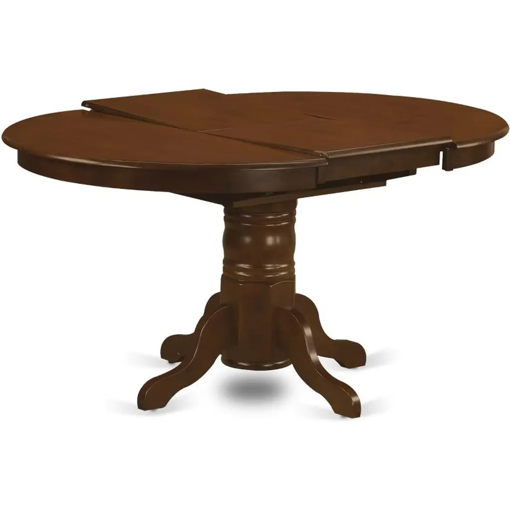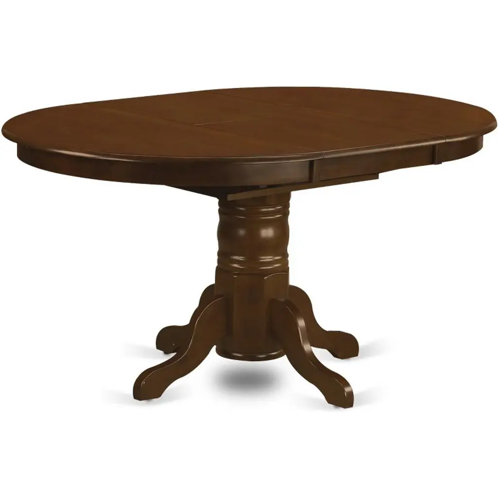 This type of eye-catching Asian Rubberwood kitchen table and Kitchen area dining chair set fits well for most dining rooms or kitchens. The kitchen table contains an expansion leaf that folds and stores right inside of the table. The pedestal dining room table is in an fascinating Espresso, and the 6 kitchen chairs are designed in a ladder-back design in Espresso to greatly enhance the table. Premium quality Fine Furniture Kitchen Set is Manufactured from Solid Rubberwood (also called Asian Rubberwood devoid of MDF (medium-density fiberboard), Heat-Treated Wood, Plywood, Veneer or Laminated Wood. Oval-Topped dining room table Measures 42"x42" without Leaf, 42"x60" with Leaf, and is Attractively Fashioned with Espresso-Finished Top and Espresso Sides and Pedestal Finish for Contrast and Appealing Decorating Appeal.Kitchen dining chairs are Sturdy and Fashionable Open Slatted chair back Style Adds Attractive Design Element to the Set. Pedestal-Style Table Allows for Legroom and is Ageless Designer Style. Wood Seat are Convenient to Clean.