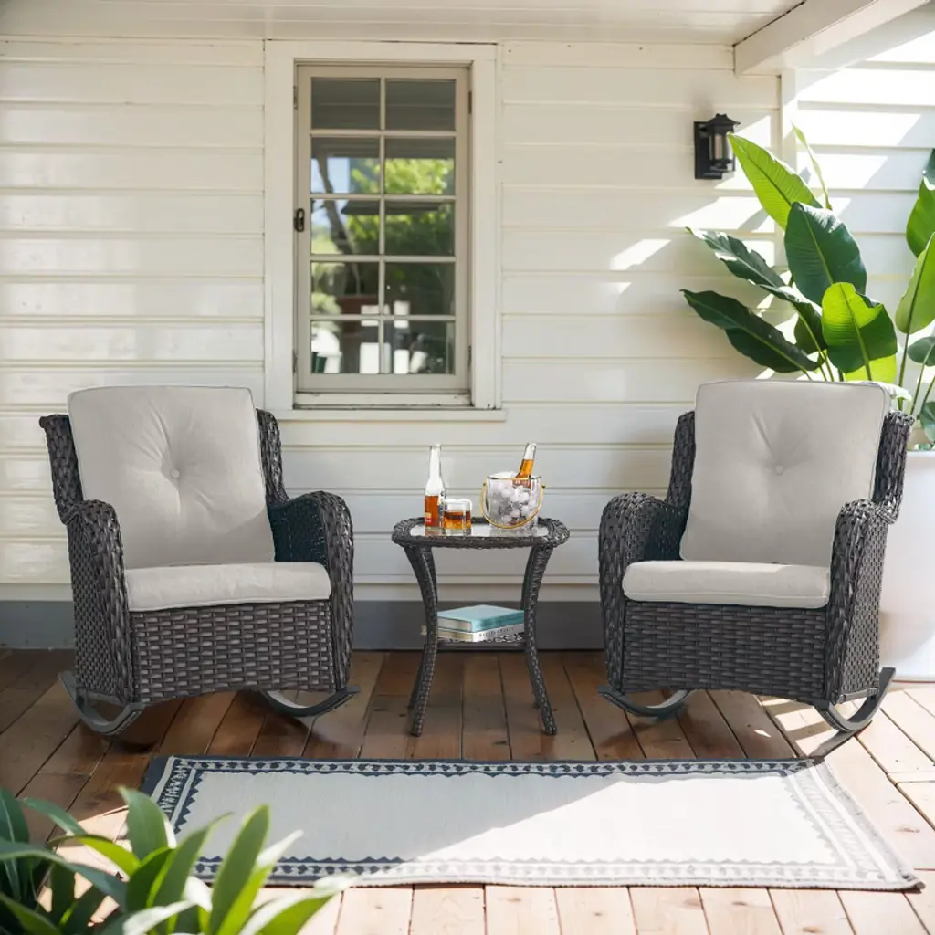 With durable, all-weather resin wicker over a powder-coated steel frame, this rocker chair is built to withstand anything life throws your way. Unlike real wicker which dries out and cracks, resin wicker is flexible and fade-resistant, which means it stays like new season after season. What's more, all-weather wicker doesn't absorb water and also allows for air flow, making it the perfect choice for the poolside! In addition, this rocker chair is virtually maintenance-free and cleaning it is as simple as spraying it down with your garden hose or wiping it with a solution of mild dish soap and water. The rocker chairs even stack for easy, off-season storage. A charming blend of classic elegance and lasting function, this rocker chair is just what you need to unwind in style after a day's work. This beautiful rocker will outlast any simple wicker chair and sits more comfortably too.