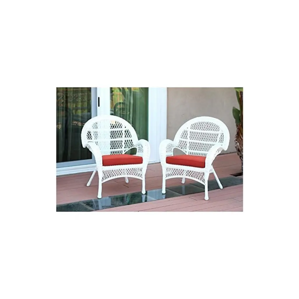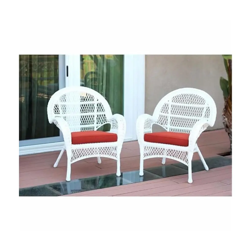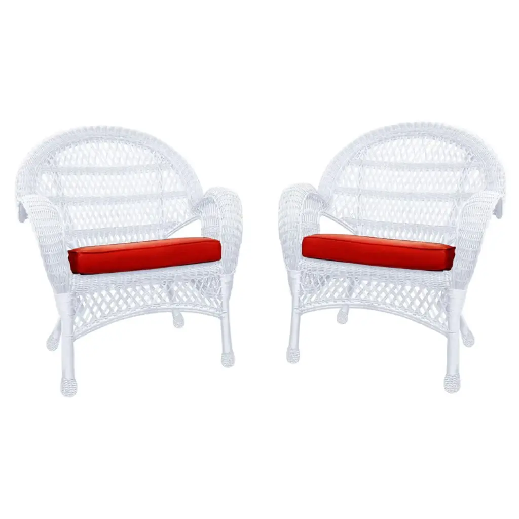 Homestock White Wicker Chair With Red Cushion - Set Of 2