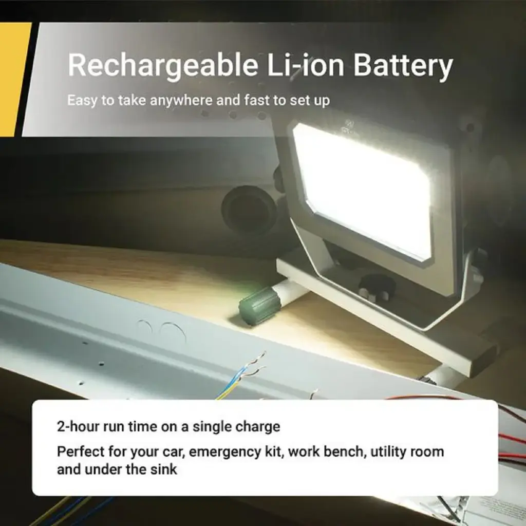 The HOMLUX 2000 Lumen LED Work Light is the epitome of portable, powerful lighting. Rechargeable and equipped with a USB port, this work light offers the versatility to take your project from indoors to out without skipping a beat. With a 2000 lumen output, it casts a bright, clear light, turning night into day to help you focus on the task at hand. Whether for professional use or a DIY enthusiast, this light's portability and high output make it an essential tool for any job.