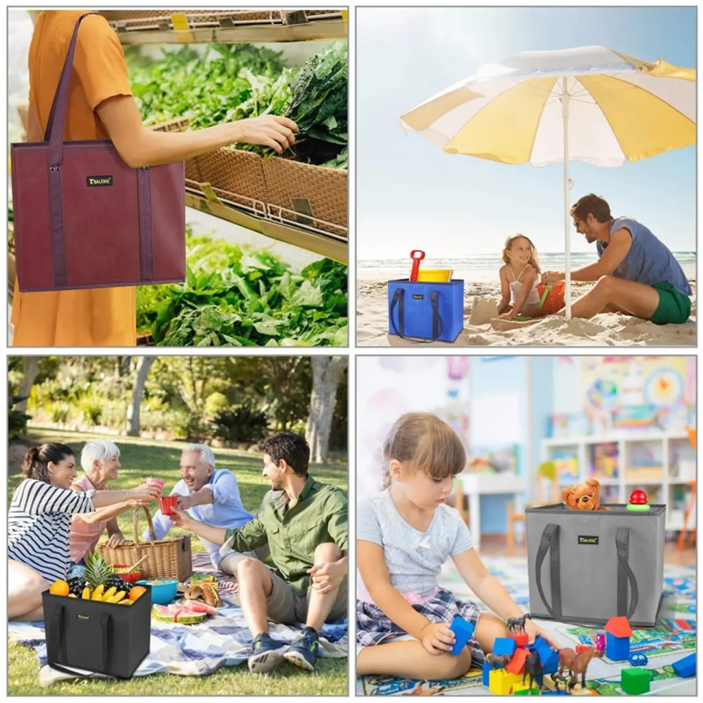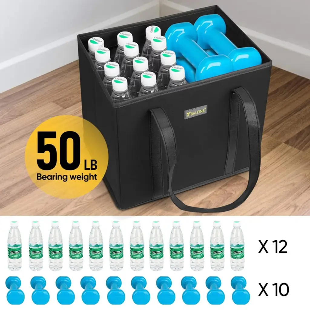 HOMLUX 3-Pack Reusable Grocery Bags are designed to make shopping easier, greener, and more organized. With reinforced bottoms and rigid box-shaped structure, these foldable totes stand upright for effortless loading and unloading. Extra-large capacity with extra-long handles makes carrying tall items comfortable by hand or over the shoulder. Water-resistant and easy to clean, they fold flat for compact storage. HOMLUX delivers durable, eco-friendly solutions for everyday shopping and sustainable living.