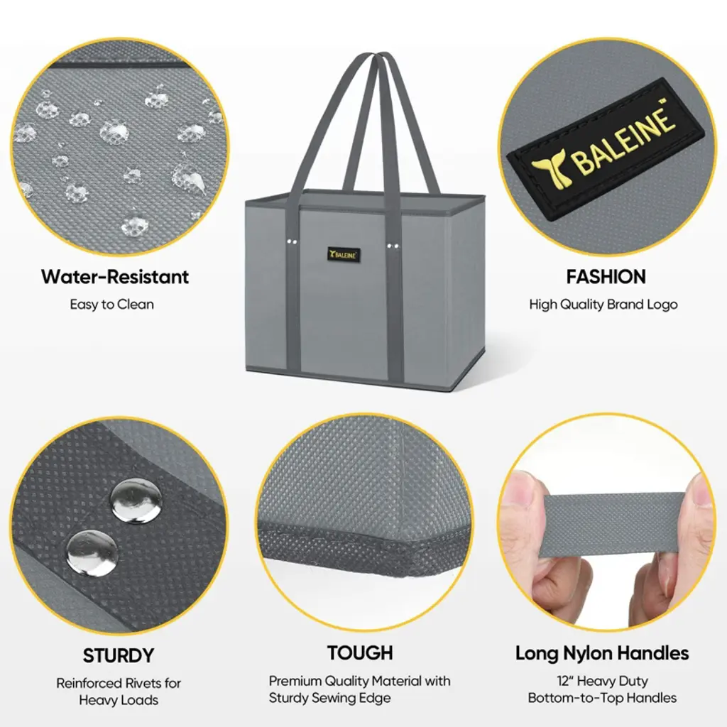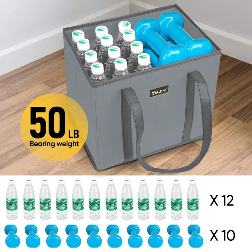 HOMLUX 3-Pack Reusable Grocery Bags are designed to make shopping easier, greener, and more organized. With reinforced bottoms and rigid box-shaped structure, these foldable totes stand upright for effortless loading and unloading. Extra-large capacity with extra-long handles makes carrying tall items comfortable by hand or over the shoulder. Water-resistant and easy to clean, they fold flat for compact storage. HOMLUX delivers durable, eco-friendly solutions for everyday shopping and sustainable living.