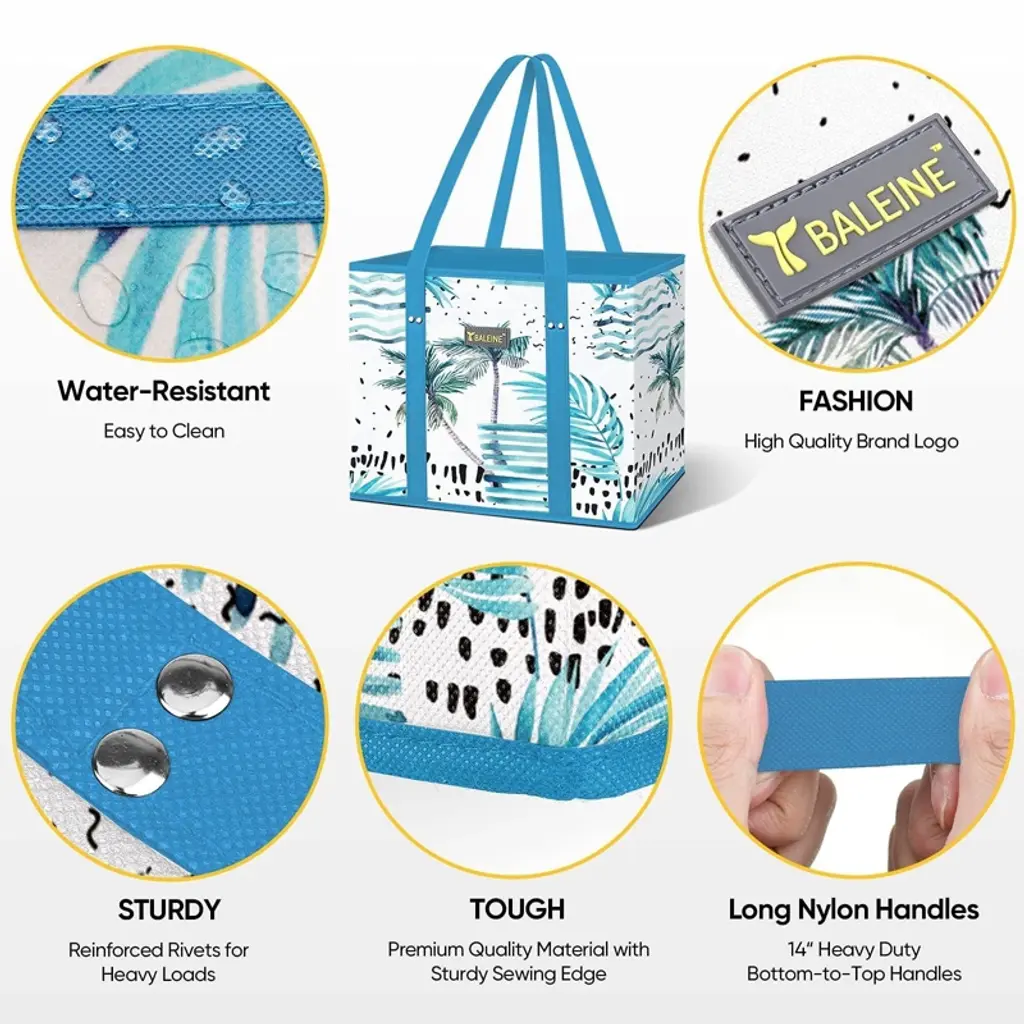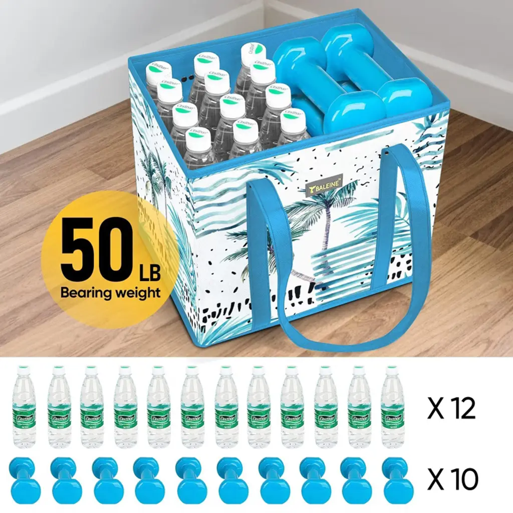 Homlux 3Pk Reusable Grocery Food Storage Bags Foldable, Reinforced Bottom, Long Handles, Island Breeze