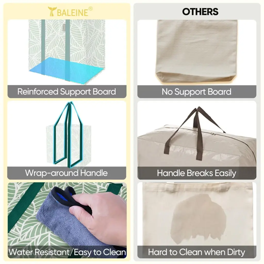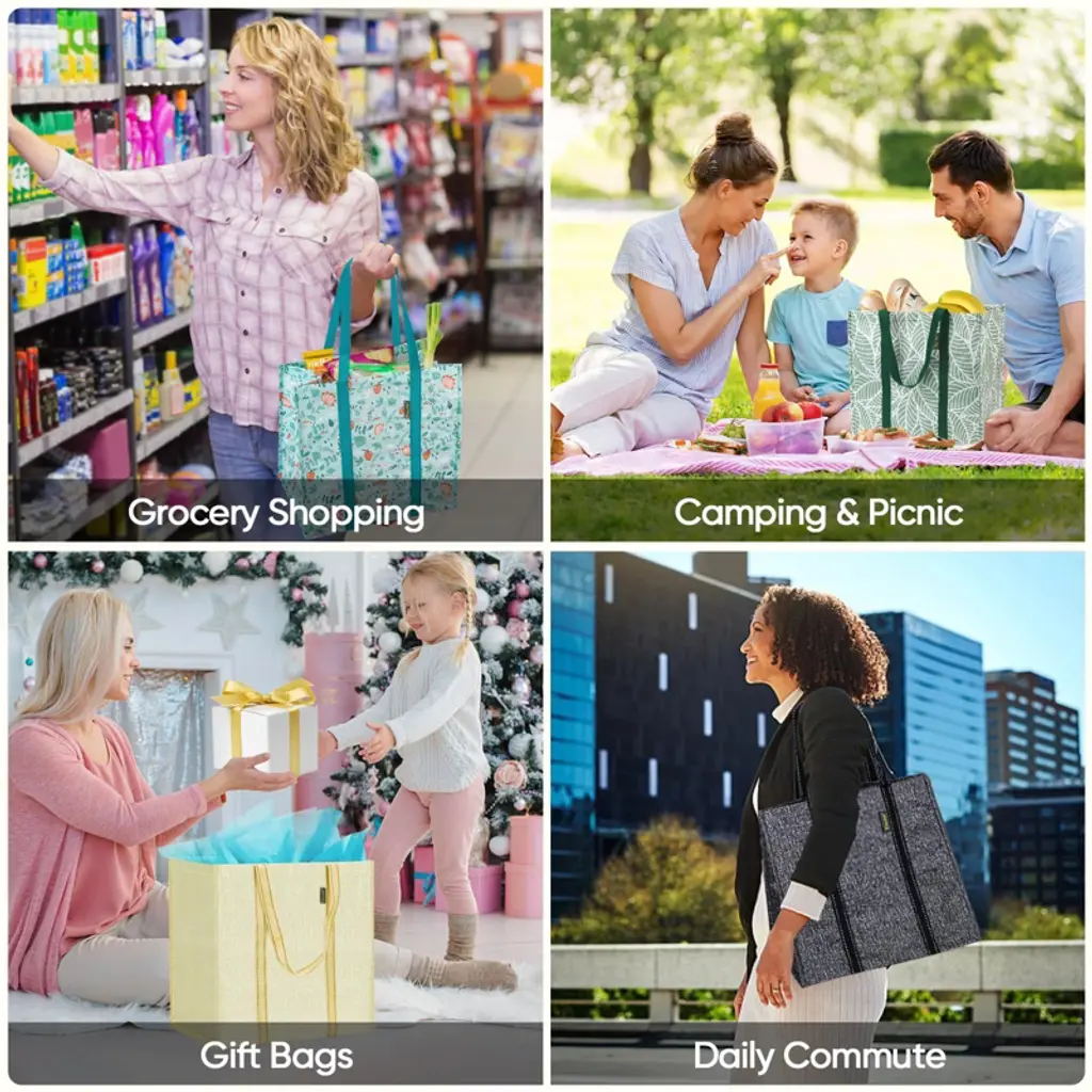 Durable and eco-friendly, these reusable grocery bags feature a reinforced bottom for stability and a large capacity for all your shopping needs. Made from tear-resistant material, they fold flat for easy storage and keep items secure and organized on every trip. Perfect for groceries, markets, and everyday errands.