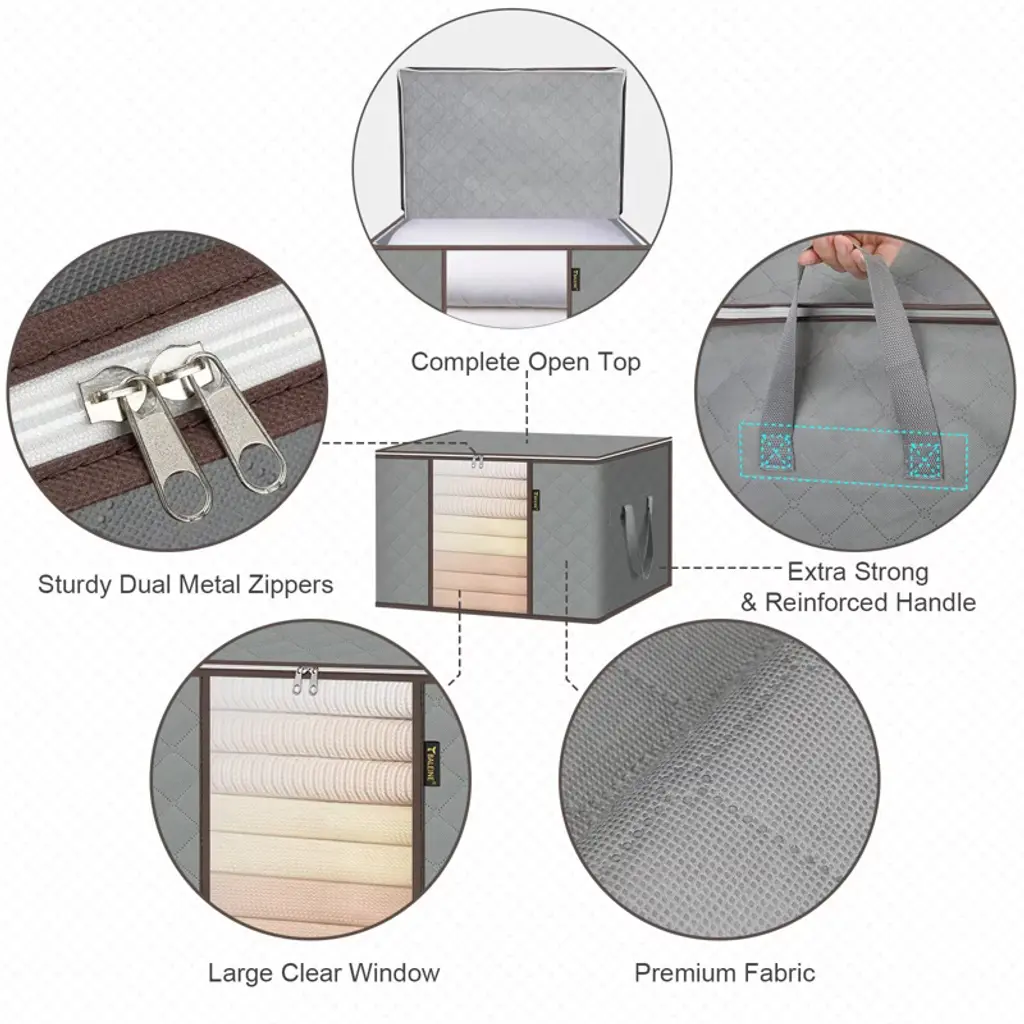Homlux 6-pack Foldable Clothes Storage Bags With Reinforced Handle & Sturdy Zipper,gray