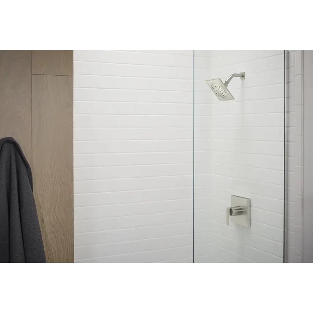 With clean lines and square features, the contemporary Honesty faucet collection draws inspiration from modern European design. This shower trim includes a water-saving showerhead with Katalyst air-induction spray. By infusing two liters of air per minute, Katalyst delivers a powerful, voluptuous spray that clings to the body with larger, fuller water drops. Pair this trim with a rite-temp pressure-balancing valve, which maintains your desired water temperature during pressure fluctuations.