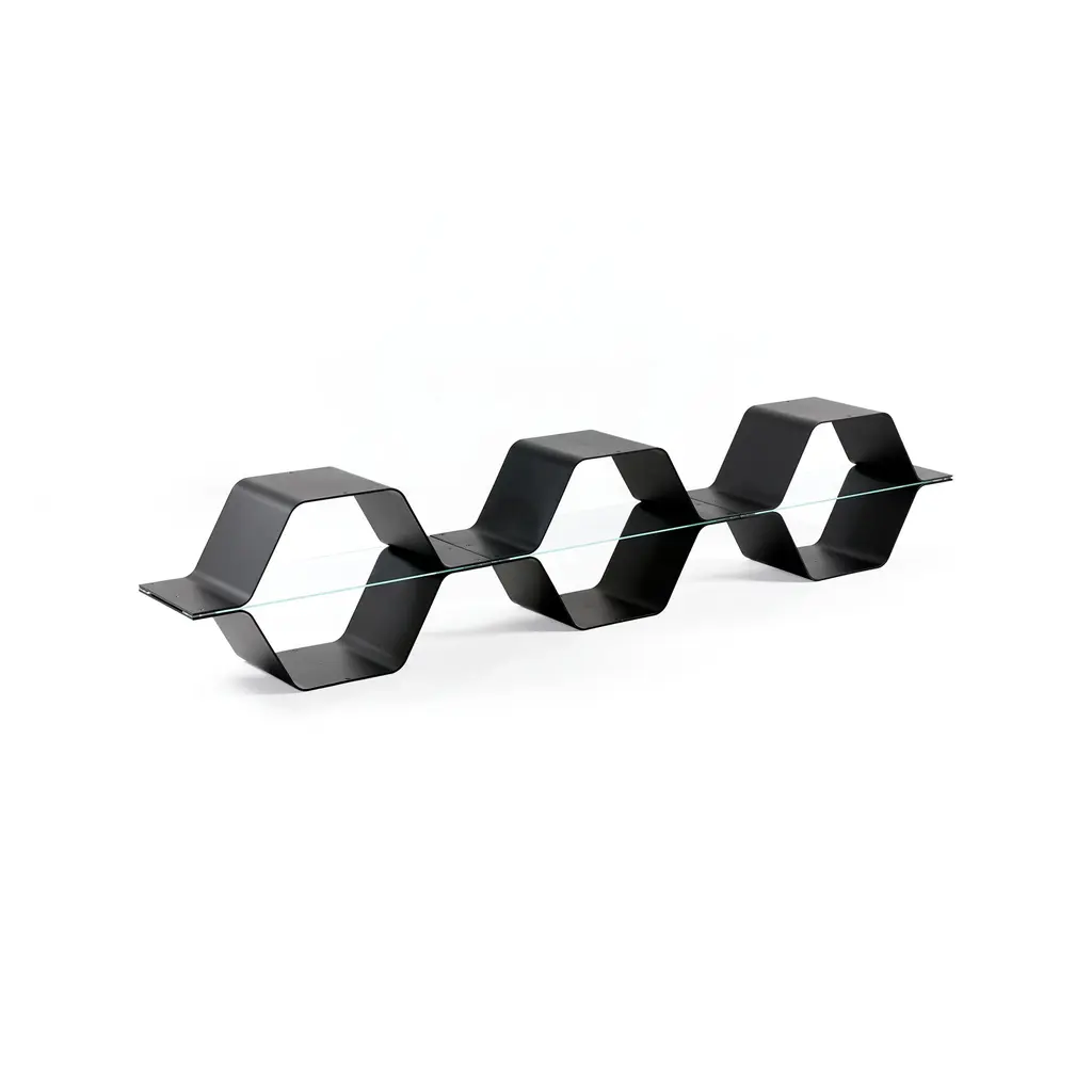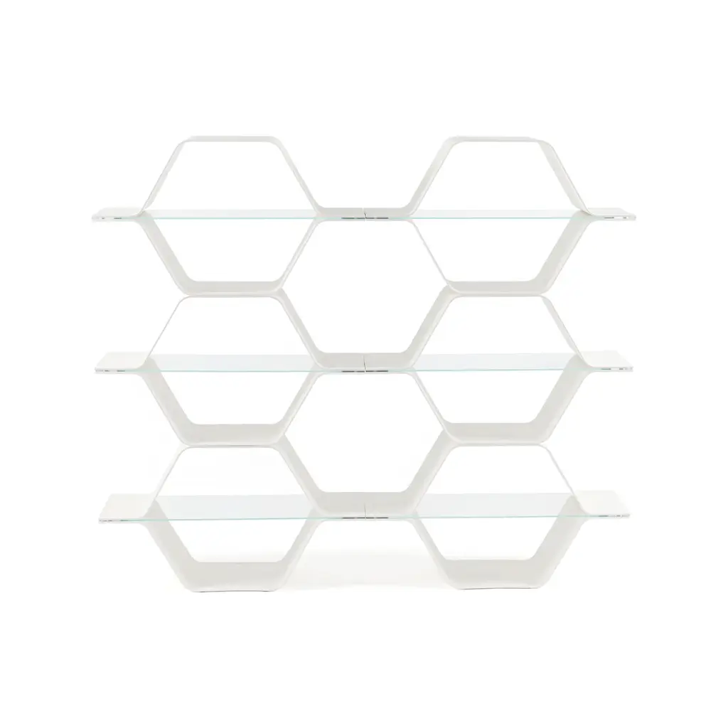 Efficient and stunning, the Honeycomb Modular Shelving from Heller is inspired by the strength and adaptability of honeycombs. With its hexagonal structure, this shelf offers both sculptural beauty and minimal material usage, making it a sustainable and timeless addition to any space. Experience the perfect blend of innovation and design from designer Bill Curry's forward-thinking approach. Highlights