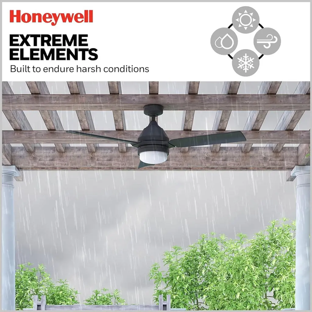 Honeywell Ceiling Fans Port Isle Modern 54 Inch Outdoor Ceiling Fan With Light, Led Fan With Remote Control, And Weather Resistant Blades, Black