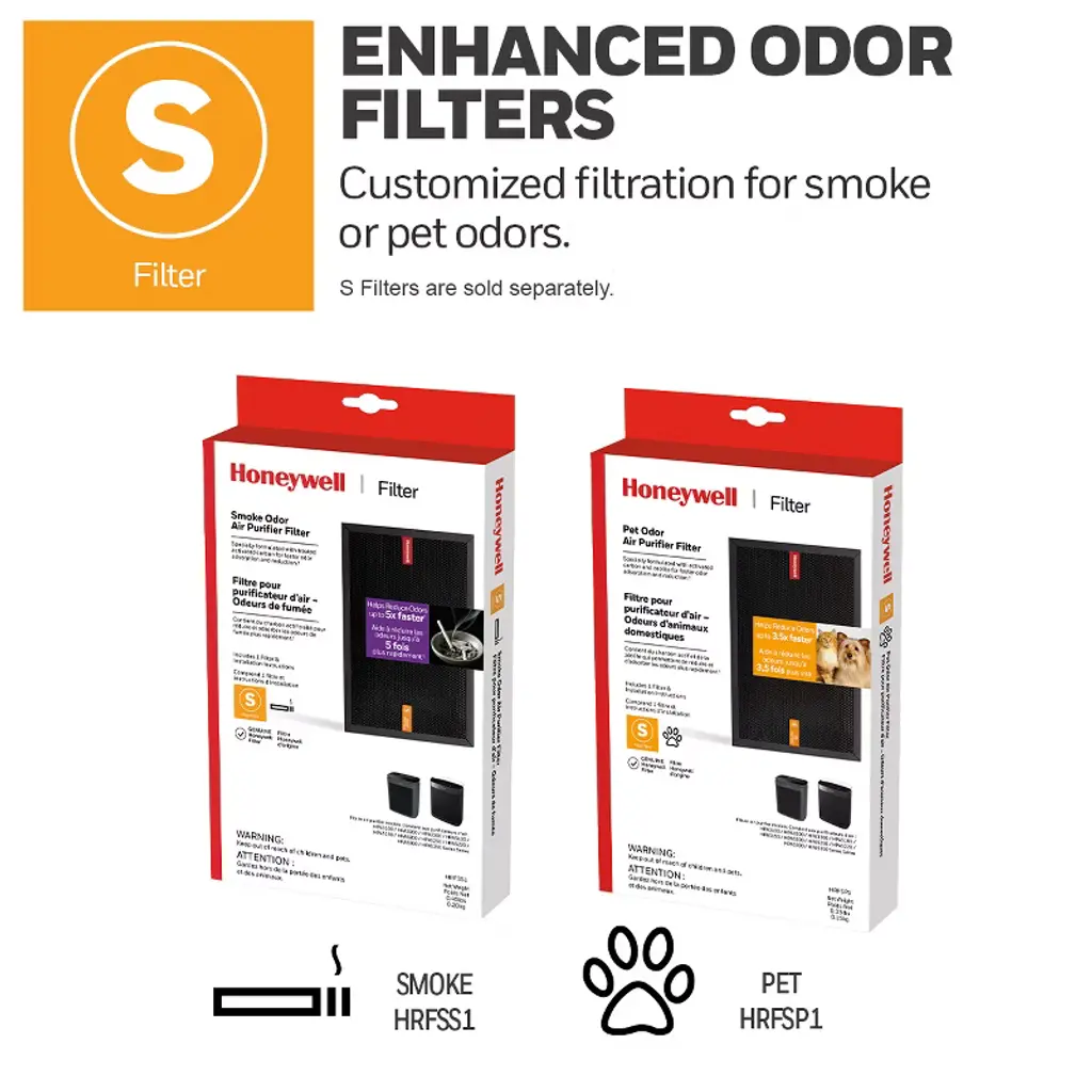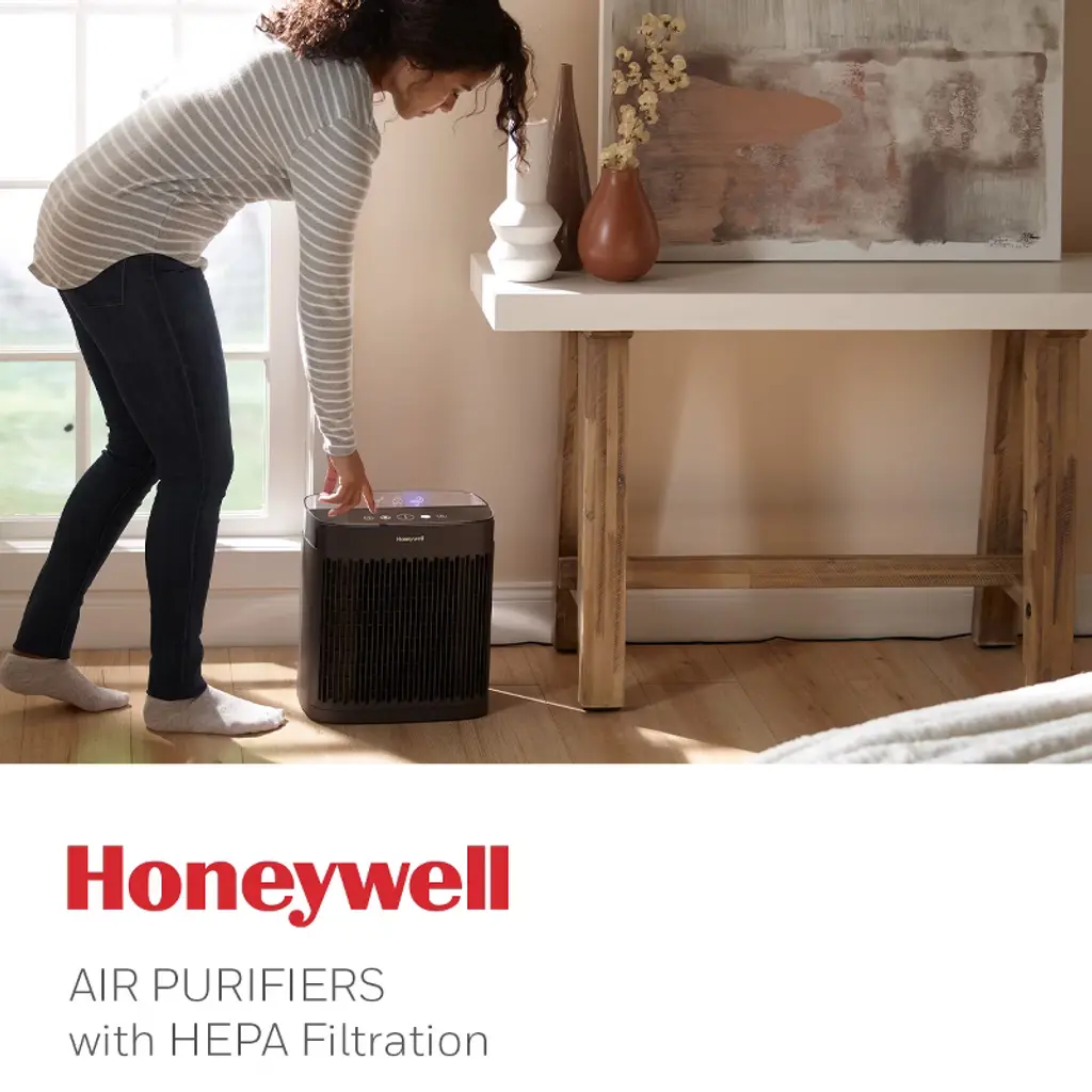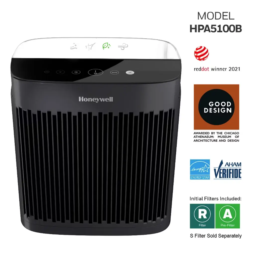 Honeywell HPA5200B Allergen+ Plus Series HEPA Air Purifier console helps provide cleaner, fresher air in large rooms of 360 square feet at 4.8 Air Changes per hour** Or, 1700 sq. ft. at 1 air change per hour.. It includes HEPA Filtration, which helps capture up to 99.97% of the following allergens and particles: dust, pollen, pet dander, dust mite debris and smoke*. This Honeywell air purifier can filter & circulate air up to every 12.5 minutes.** If you have pets or stale indoor air, air purifiers help deliver cleaner, fresher air. The Intelligent Air Quality Sensor continuously displays and monitors air quality. Plus, this air purifier includes Insight® Display at-a-Glace which illuminates to show the 4 cleaning levels, air quality indicator and Auto Mode setting. This quiet air purifier has an auto-off timer option at 2, 4, or 8 hours, and a dimmer option for control panel lights. This Honeywell HEPA Air Purifier is part of our Allergen+ Plus Series. This product earned the ENERGY STAR label by meeting strict energy efficient guidelines set by the U.S. EPA. Always purchase Genuine Honeywell replacement air purifier filters. They are certified to help capture odors and the following microscopic airborne allergens and particles*: dust, pollen, pet dander, dust mite debris and smoke. Other compatible filter replacements are not guaranteed to offer the same performance or efficiency. Recommended filter replacement: True HEPA R Filters 1x/yr. Odor Reducing Pre-Filter A 4x/yr. Disclaimers: * From the air that passes through the filter, 0.3 microns and larger. ** Based on 3rd party independent CADR testing for the smoke CADR value when operated at the highest level. Air circulation depends on many factors, such as room size and configuration. There is no guarantee that all of the air in a room will pass through the filter. +Non-Living Allergens. The ENERGY STAR name and mark are registered trademarks owned by the U.S. EPA.