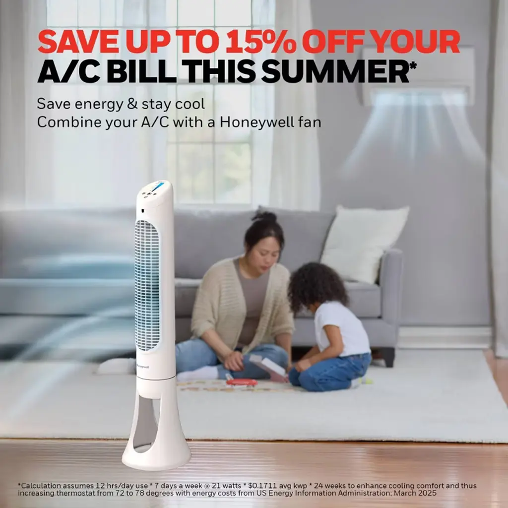 The Honeywell QuietSet® 40” Whole Room Tower Fan lets you have personalized comfort that includes 5 different levels of quiet operation for your personal sound and cooling needs. (Power Cool, Refresh, White Noise, Calm, Sleep). This sleek, elegant quiet set tower fan features an easy- touch control panel that will auto dim after 15 seconds. Extra features include 1, 2, 4 or 8 hour auto-off timer, remote control and oscillation allow for even more personalized operation. Additionally, the Honeywell Quiet Set® Whole Room Tower fan is a portable fan that features a sturdy base that helps keep the fan from tipping. this quiet set tower fan that features extremely easy assembly and doesn’t require any tools.