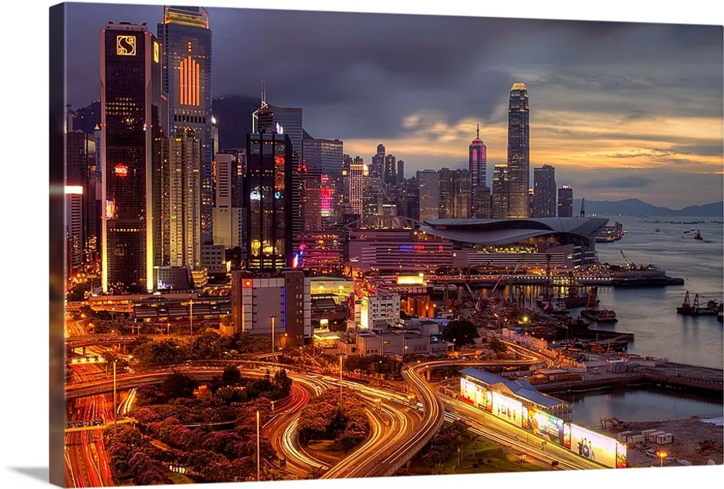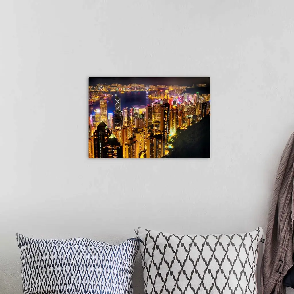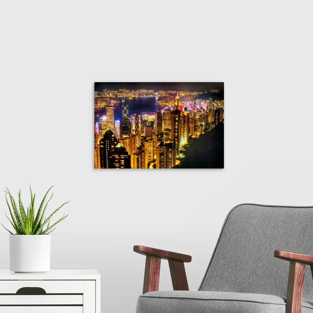 High angle view of Hong Kong night skyline from the Victoria Peak.