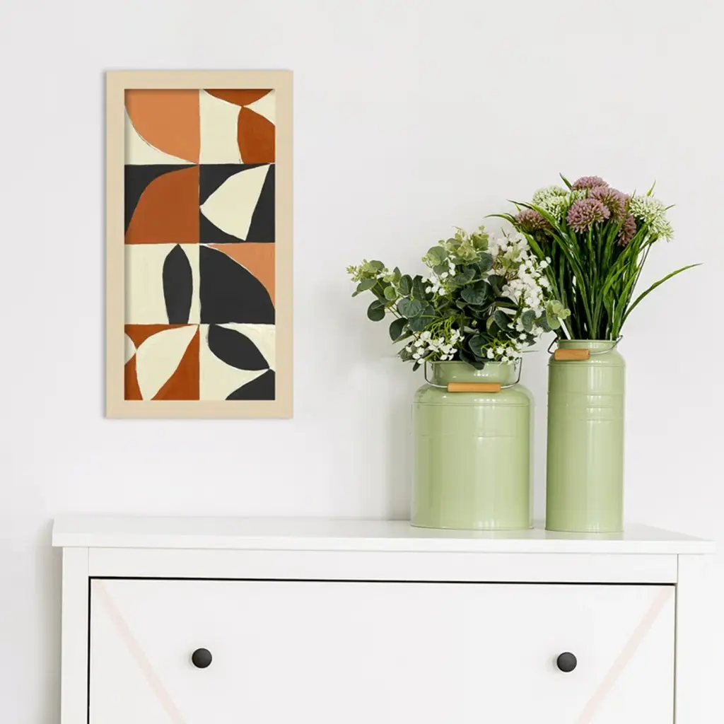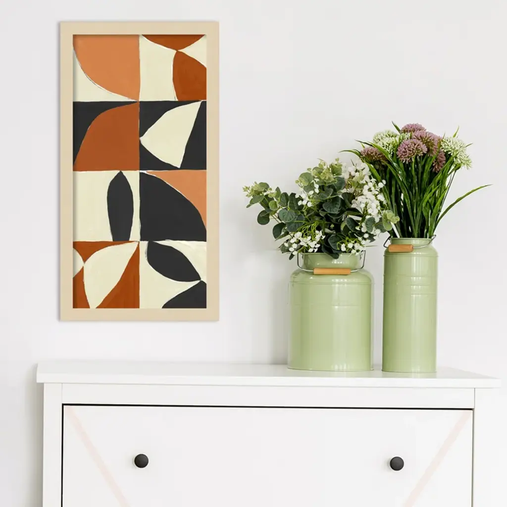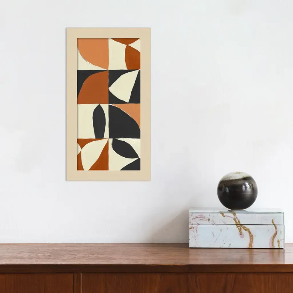 Add a vibrant touch to your walls with this striking framed art print. Featuring a Mayan pattern in black, orange, and cream, it adds a modern and artistic flair to any space. Made with high-quality materials and ready to hang with included wall mounting hardware. Elevate your decor with this unique piece by artist Isabelle Z.