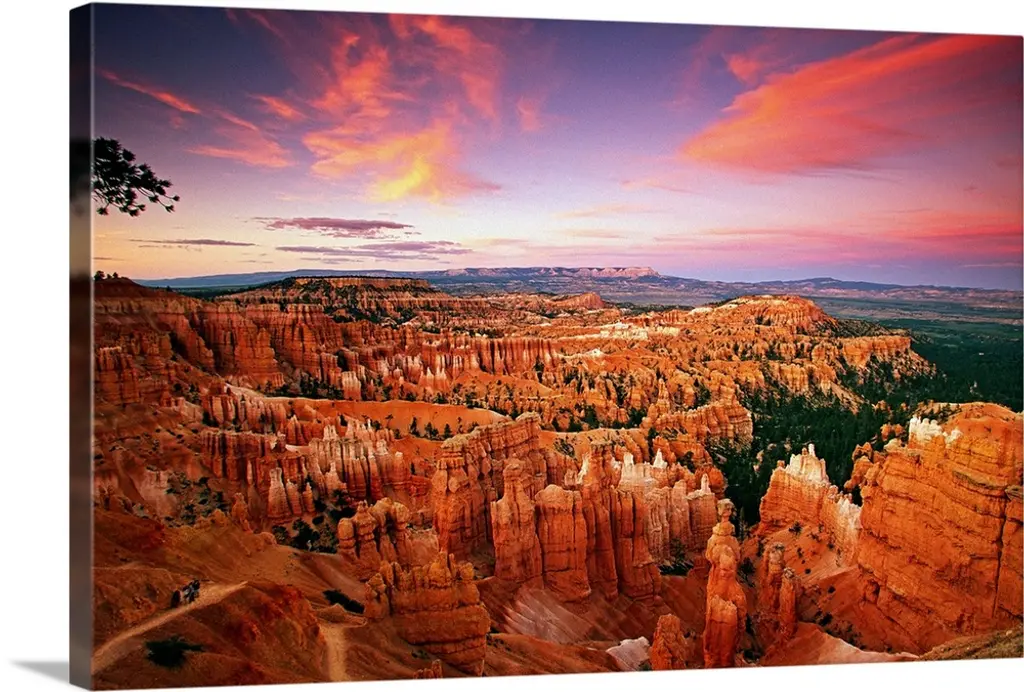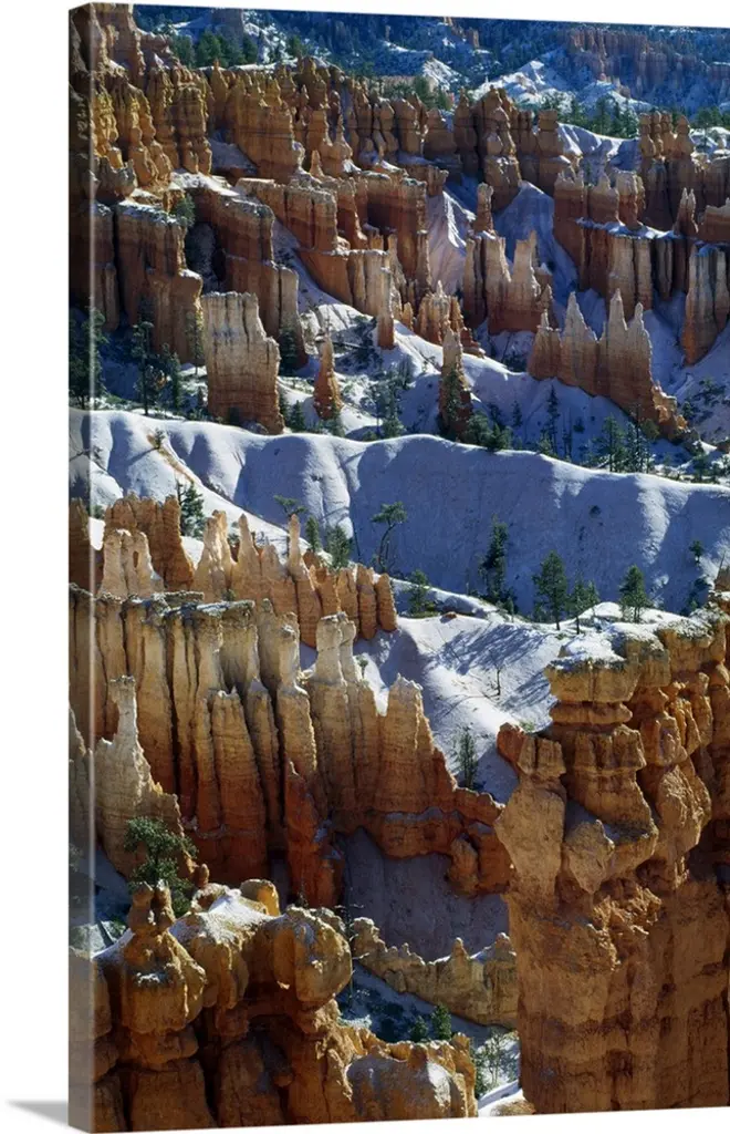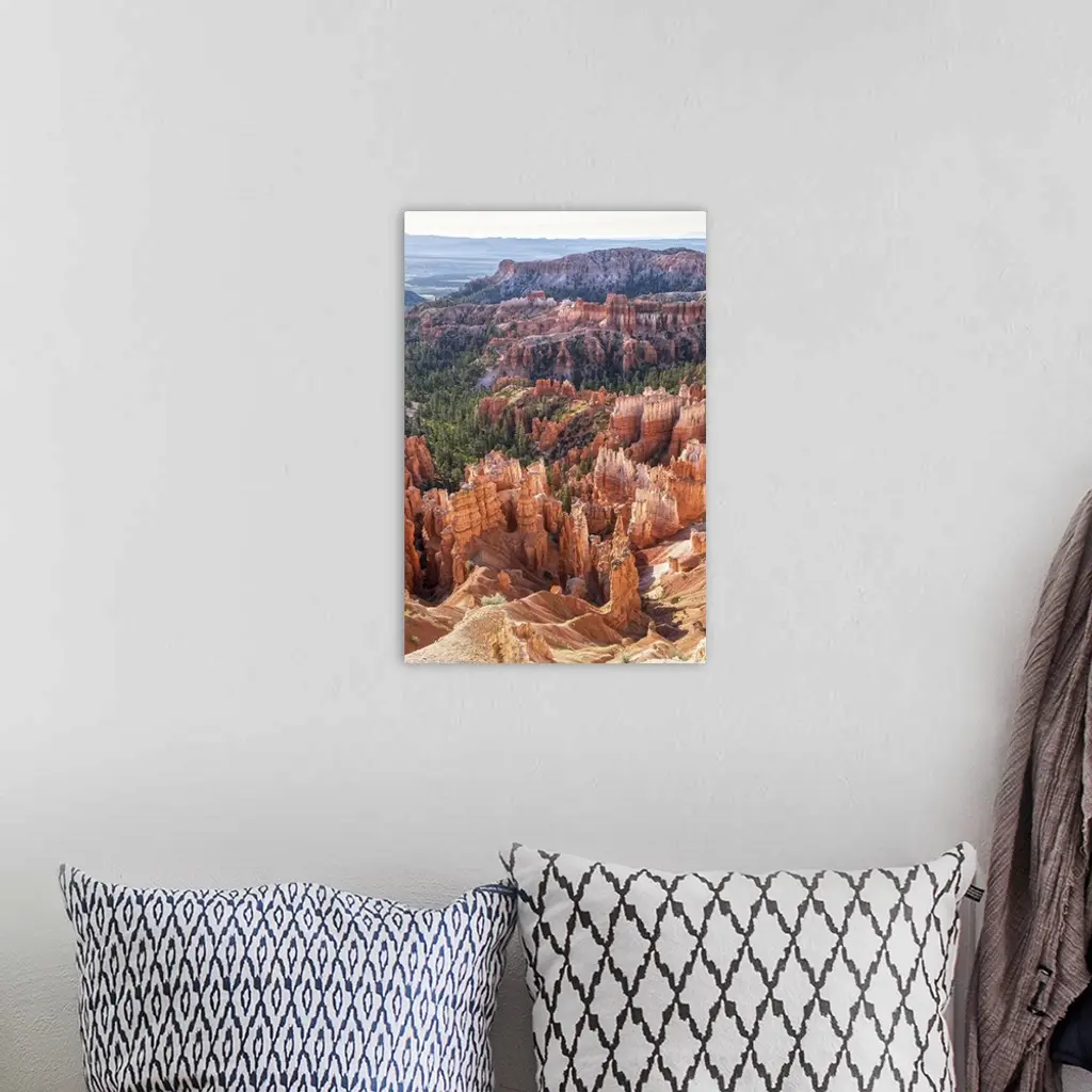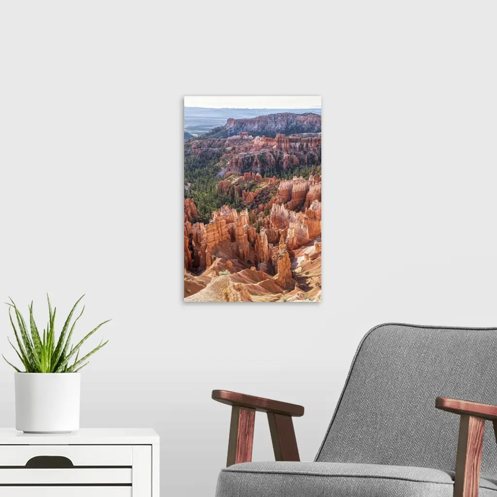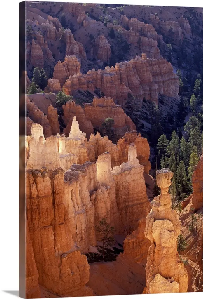 Rocky hoodoos and lush pine forests contrast in Bryce Canyon National Park, Utah.